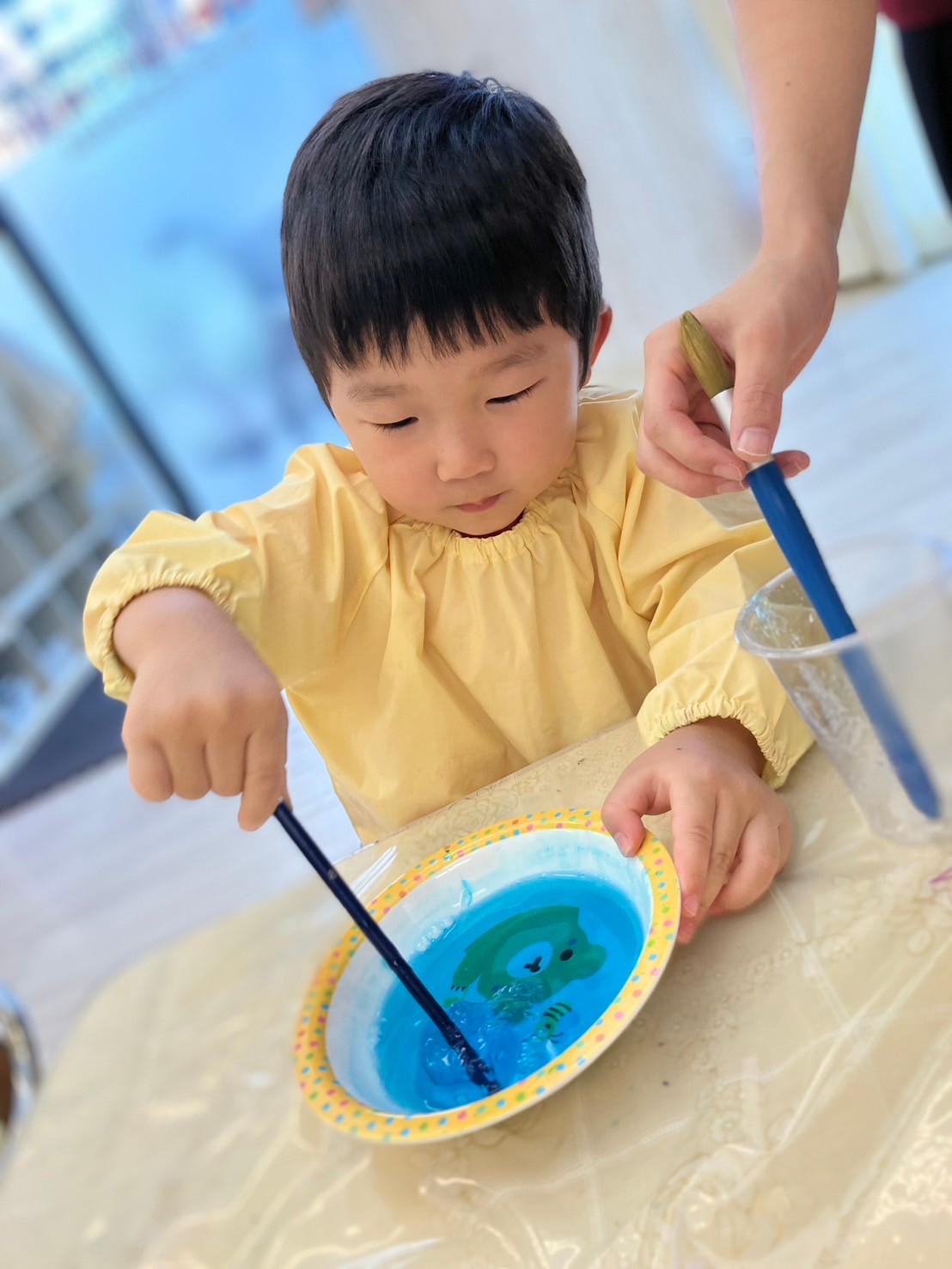 「頑張って混ぜてみよう‼︎どうなるかな?楽しみだね!」と保育者が応援することで、気持ちを奮い立たせ、諦めることなく手を動かし続けてくれました。