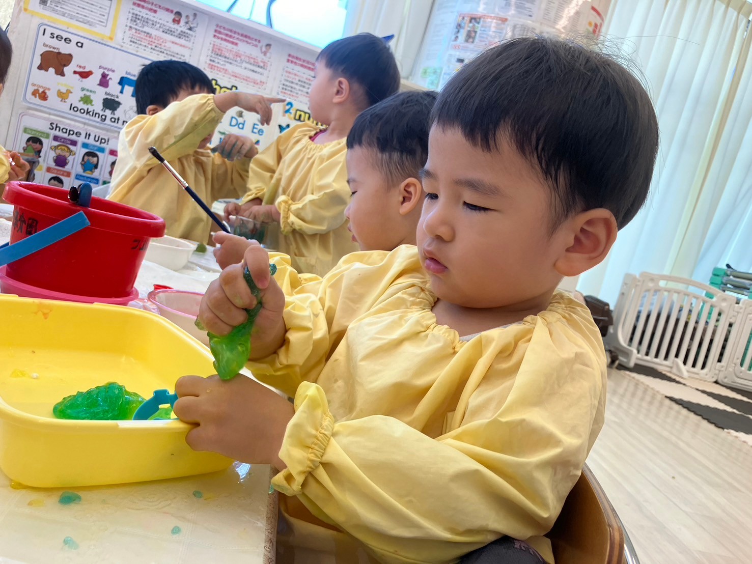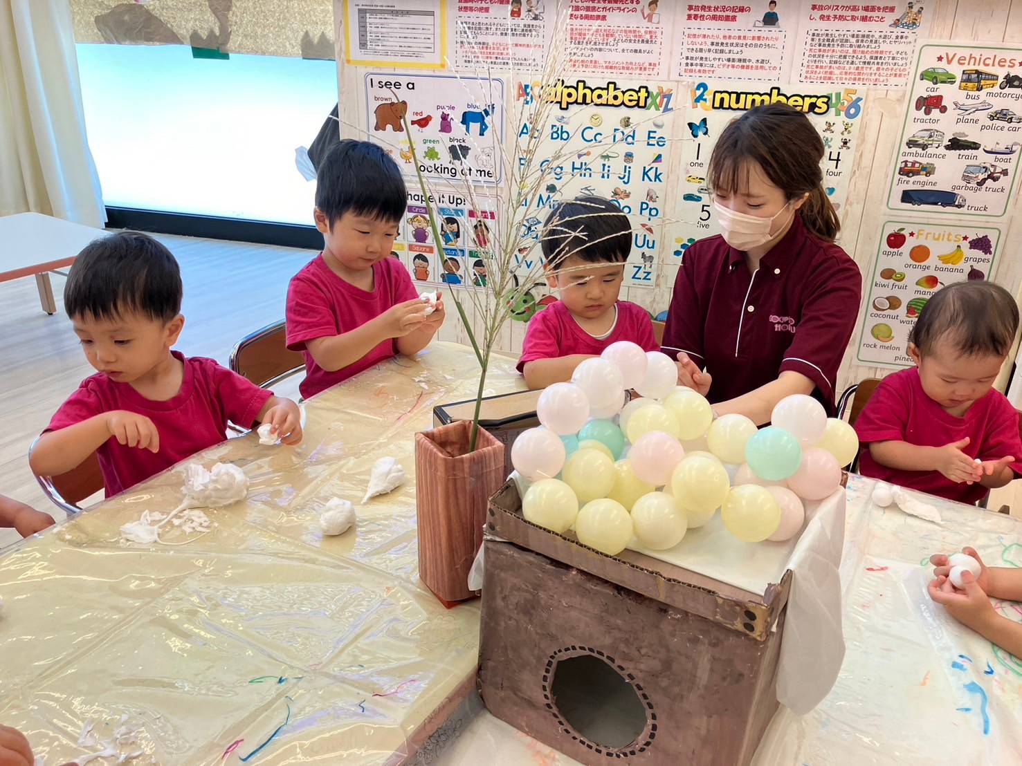 「おはよう〜!」「good morning‼︎」と元気良く登園する子ども達。