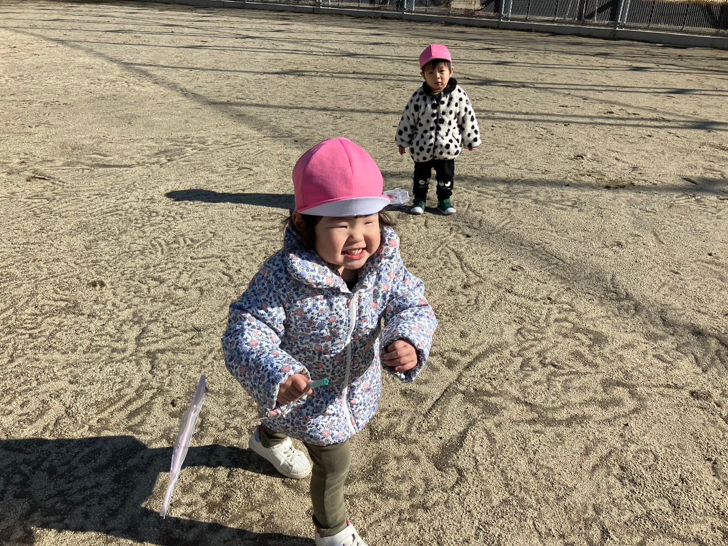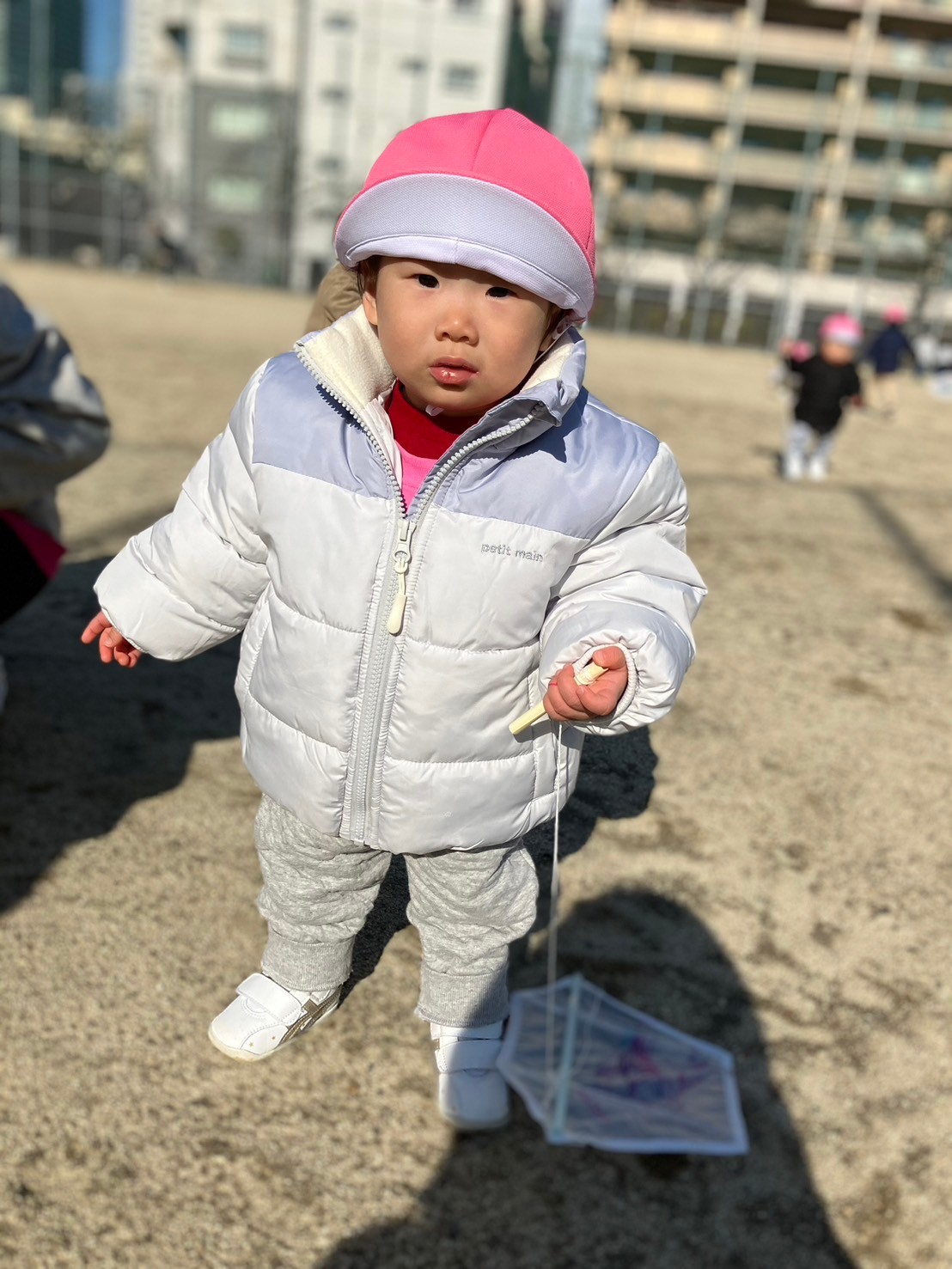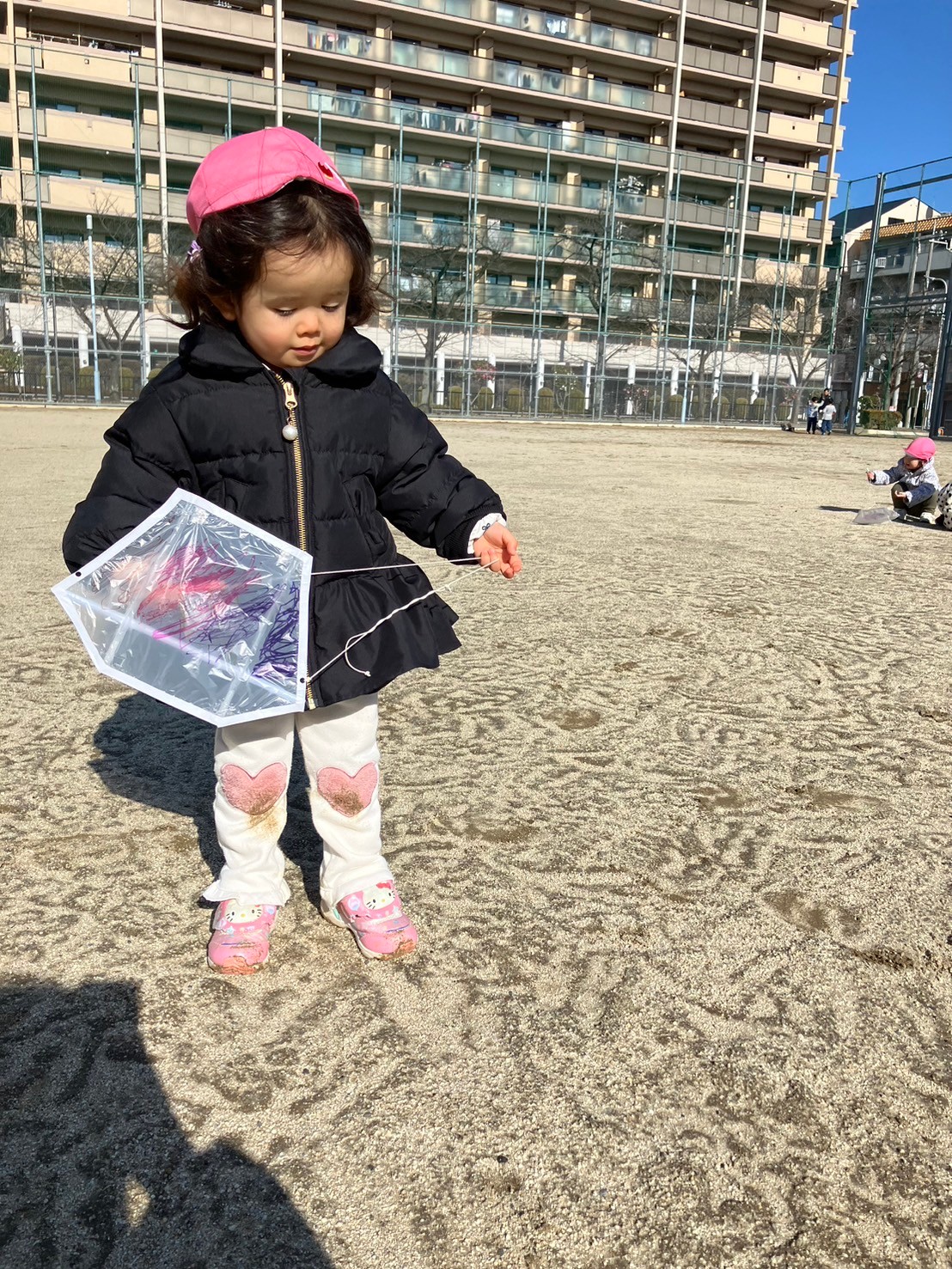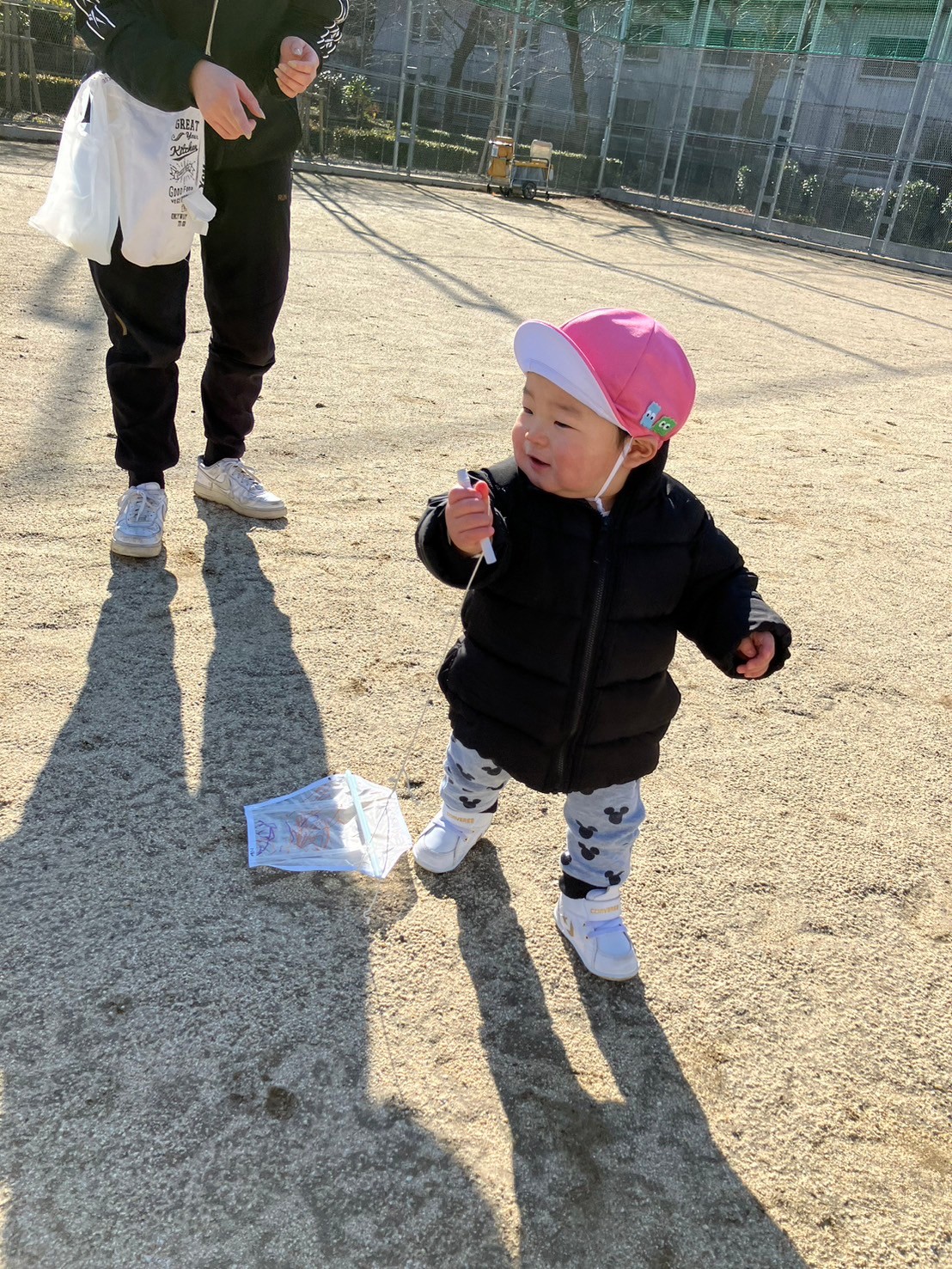 「あはは〜♪」と言いながら凧を揚げるのに夢中で全力疾走!大はしゃぎでした。