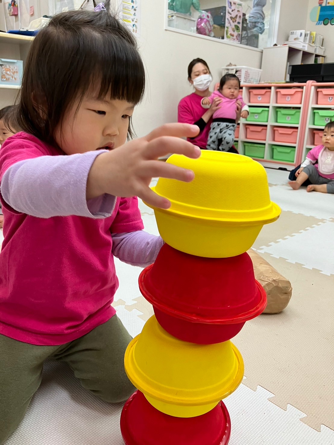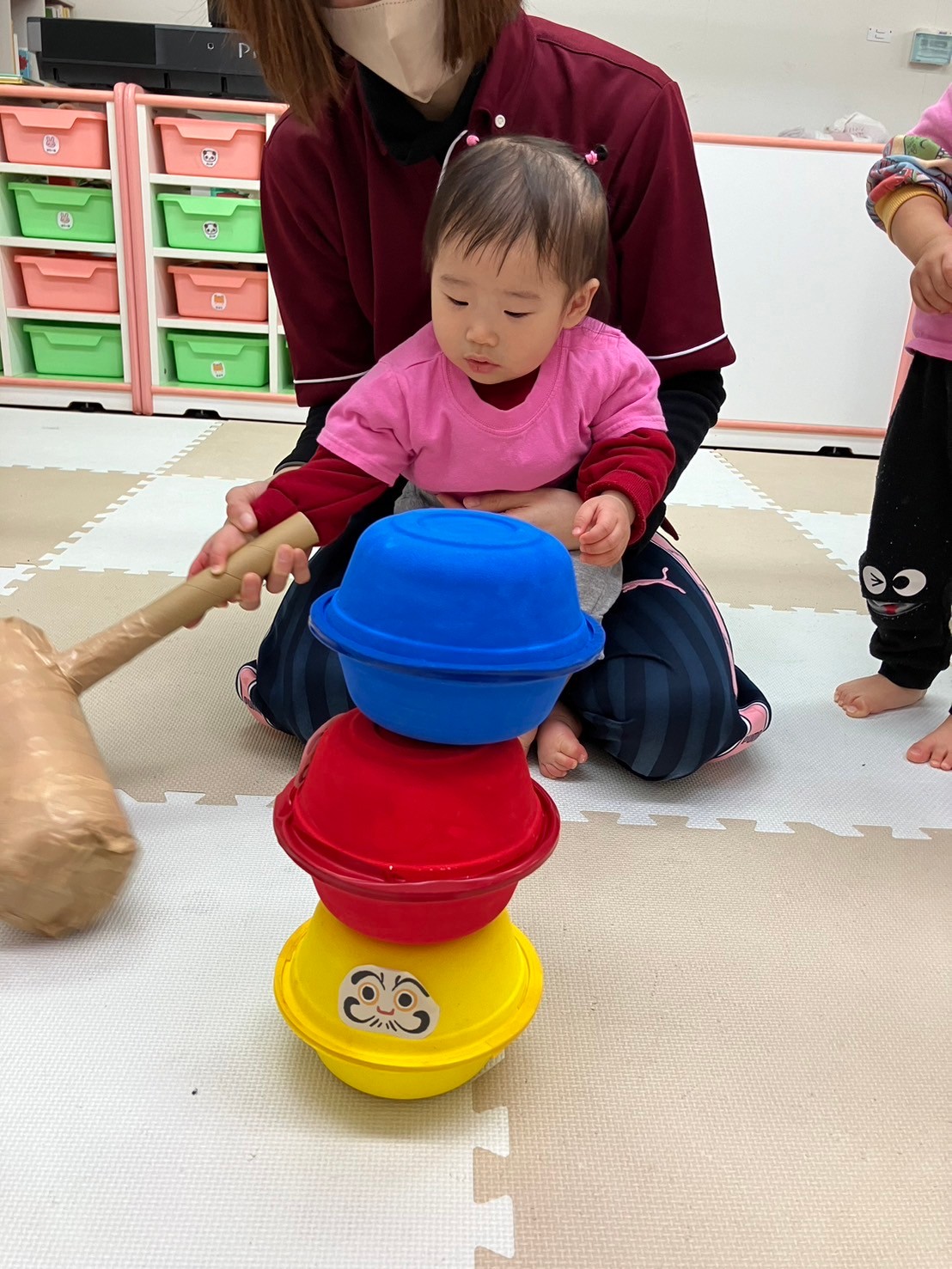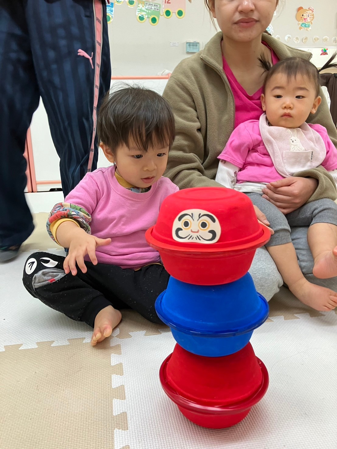 だるまを高く積み上げる競争やボールを転がして倒すという様々なゲームも楽しみましたよ♪
