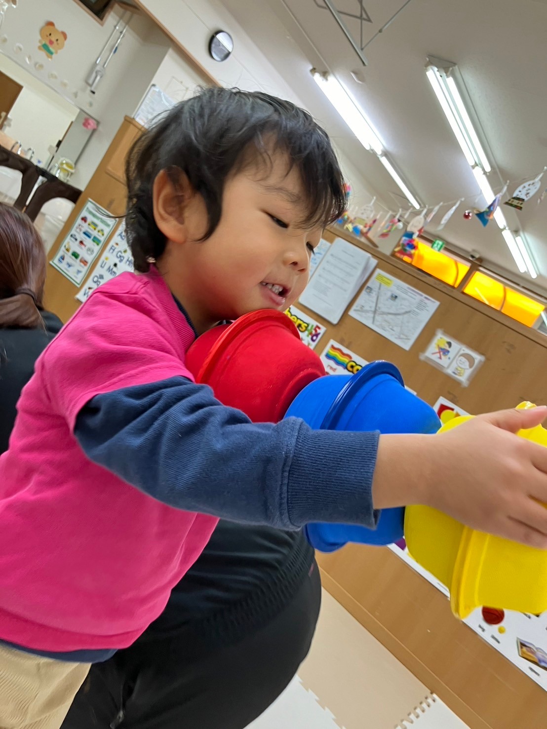 「あかー!」「ぼくは、あおがいいー!」と呟く子もいれば、何が始まるのか分からず、真剣な表情でお話を聞いている子もいましたよ。