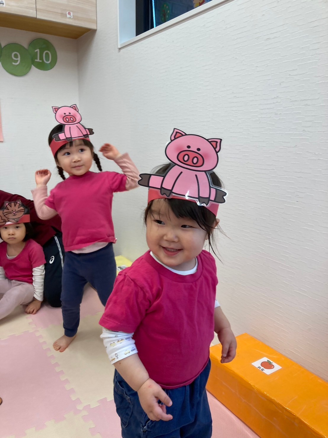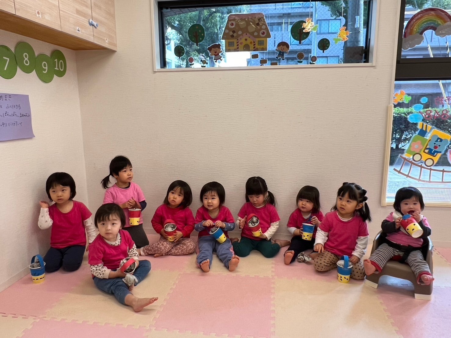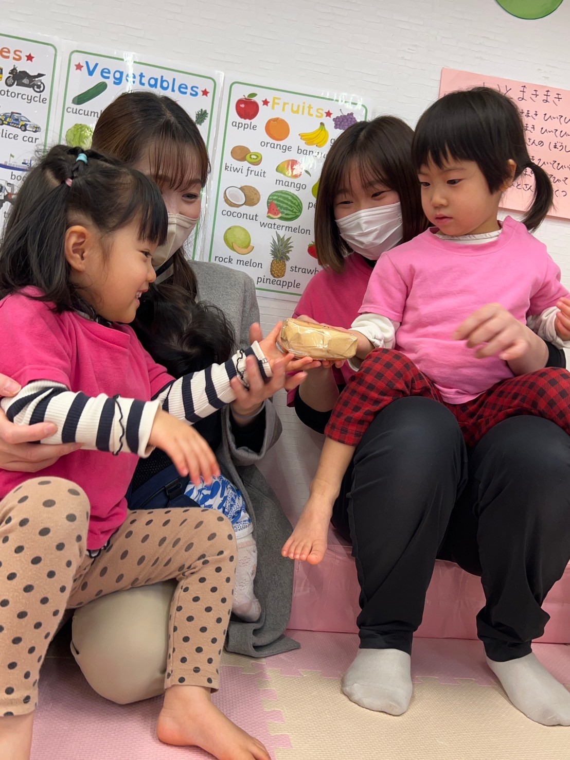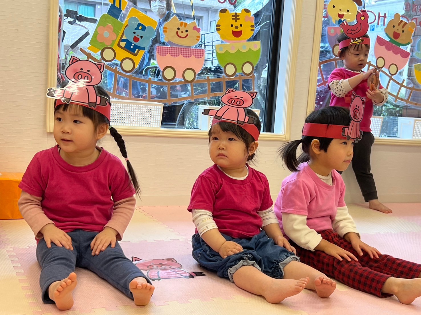その後は鬼の登場!鬼が怖くて泣きつつも鬼は外!福は内!と練習の成果を出し、頑張って豆を投げていました。