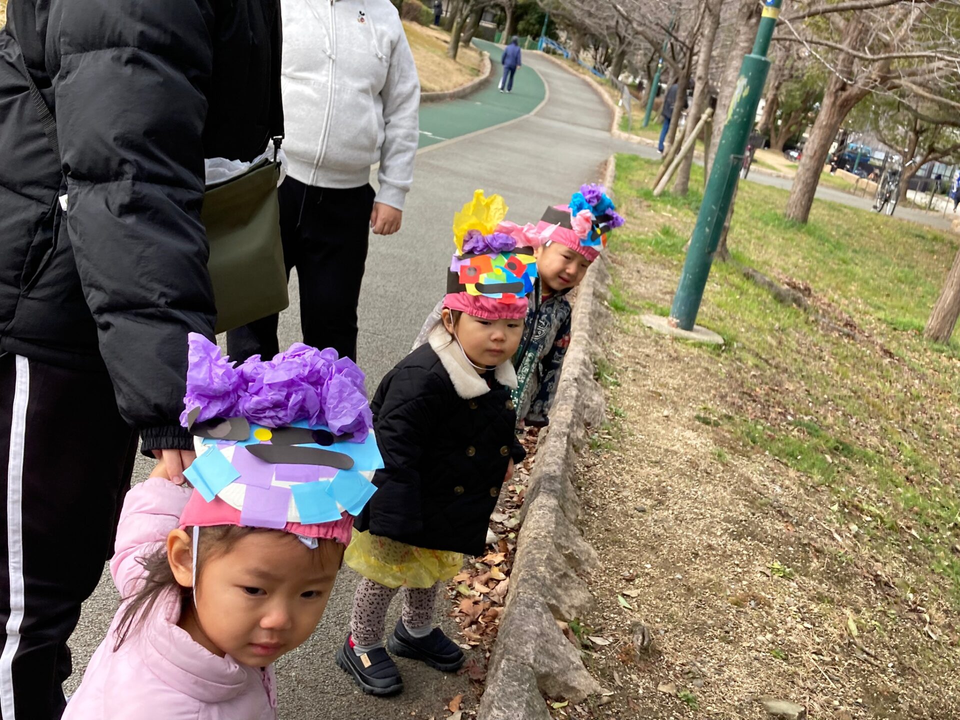 鬼をやっつけた後は、公園まで行きました。「かわいい鬼さん」と、近所の方にたくさん声をかけてもらいました。