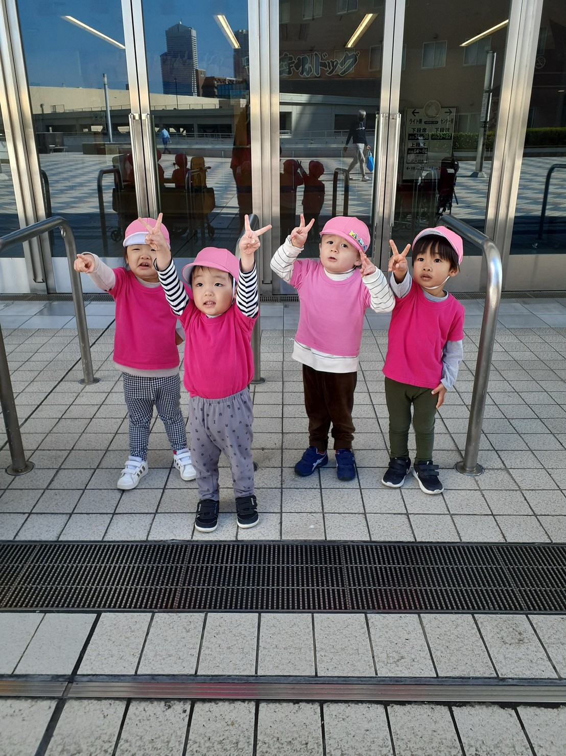そして2歳児クラスの子どもたちは保育者と一緒にゆっくり階段を昇って京セラドームの広場へ行っています!