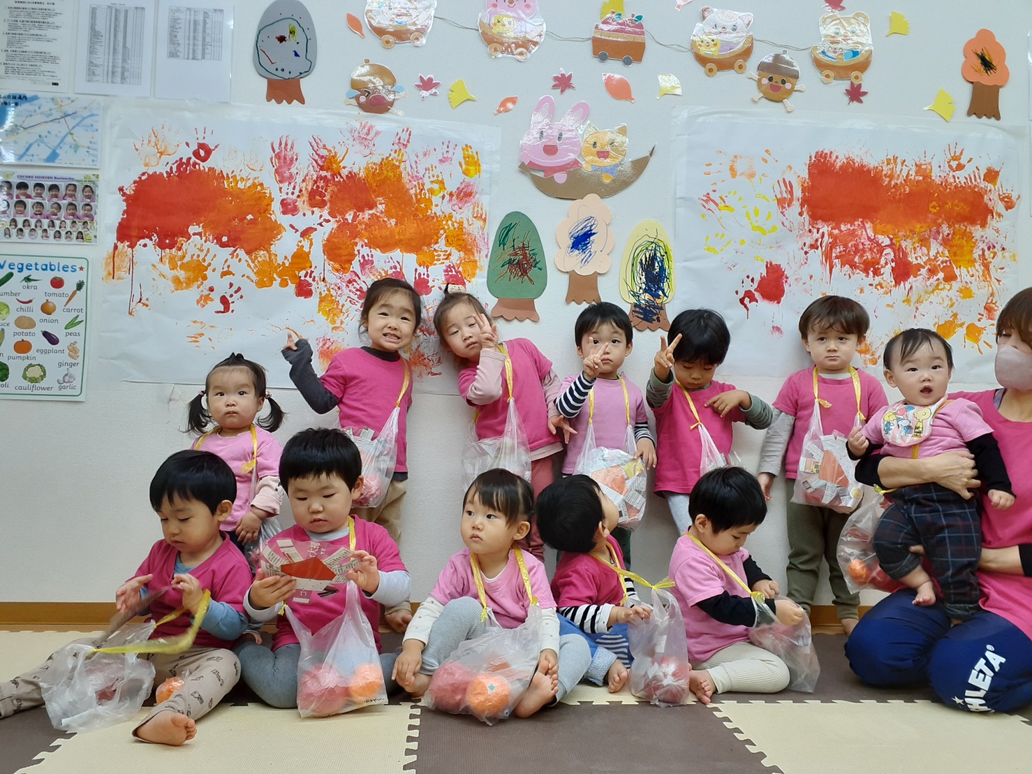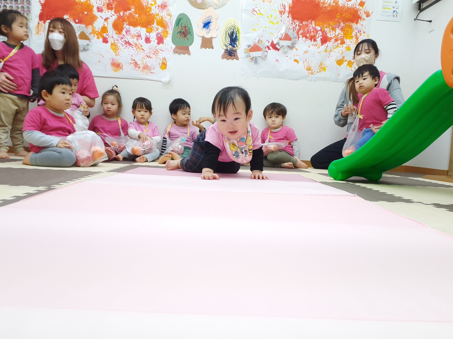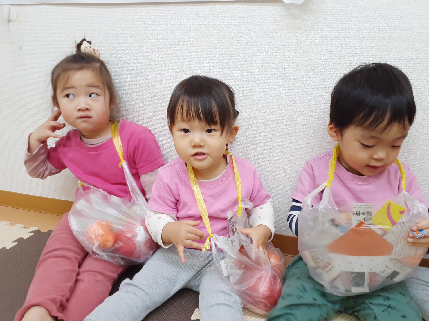 たくさん走ってくぐってをしたら後は「たのしかったねー」と言いながら園に帰ってきます♪