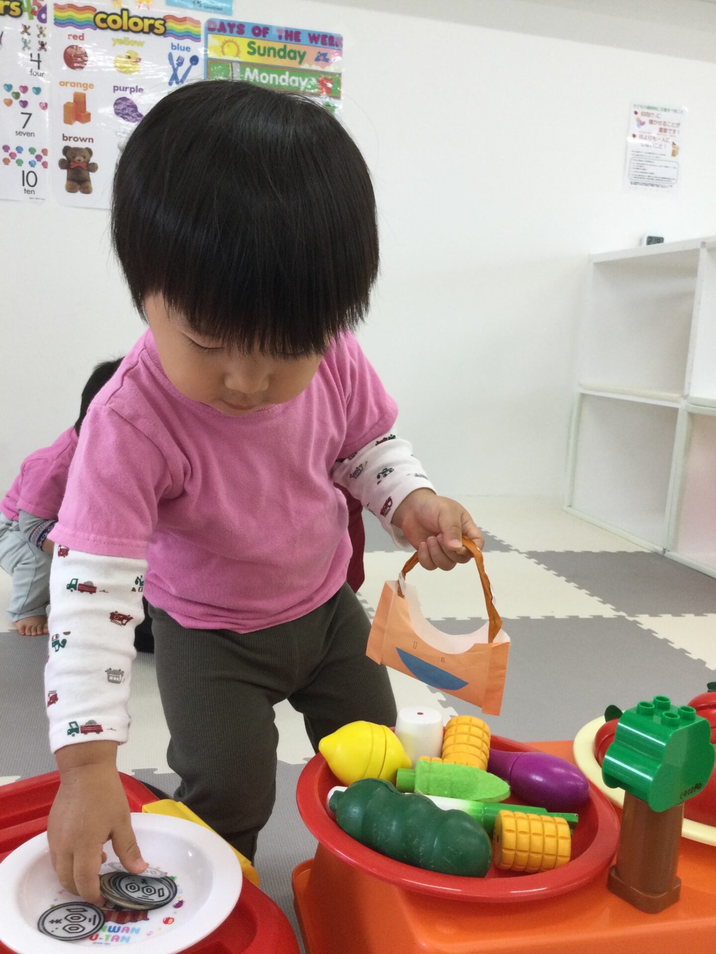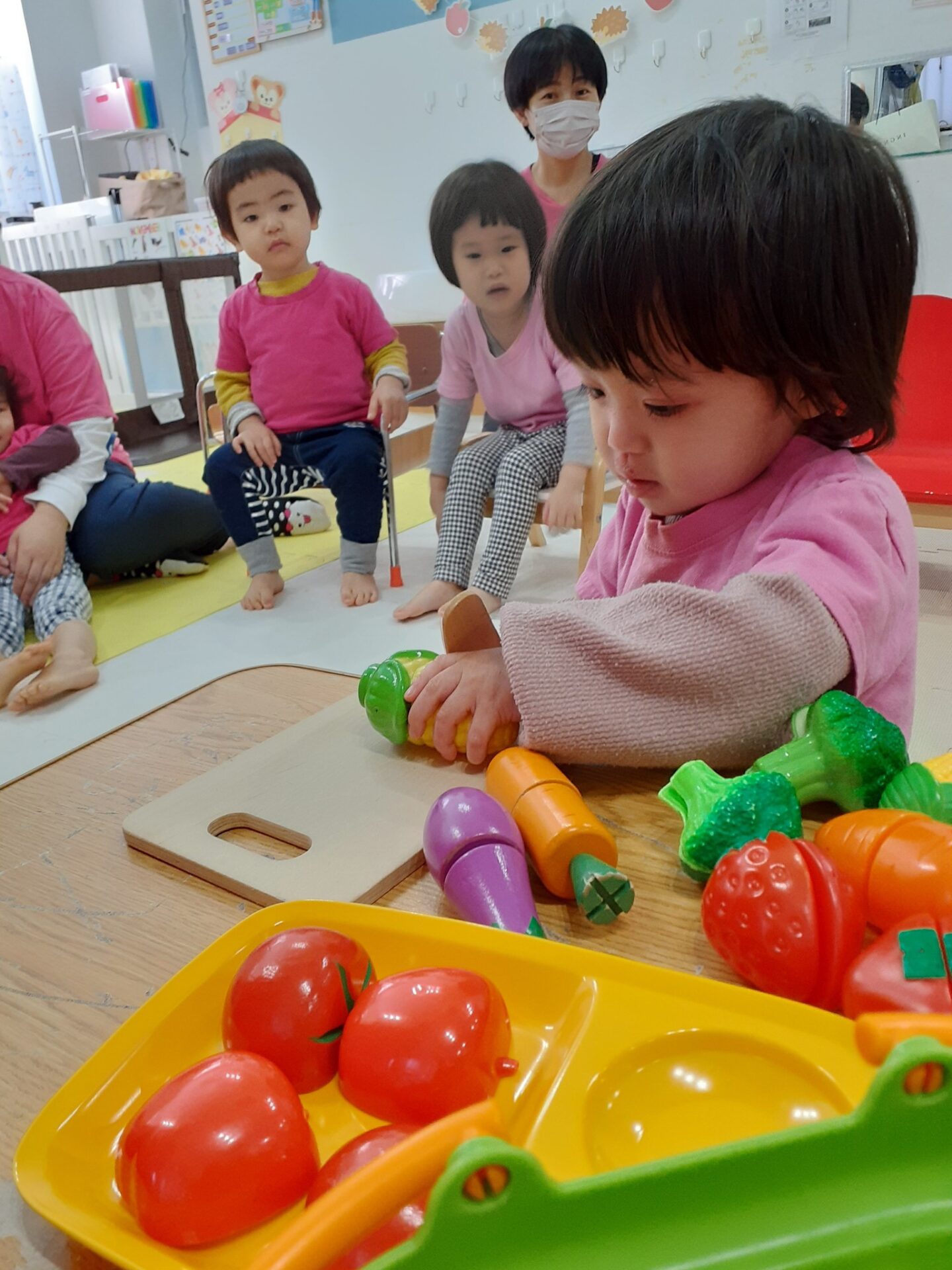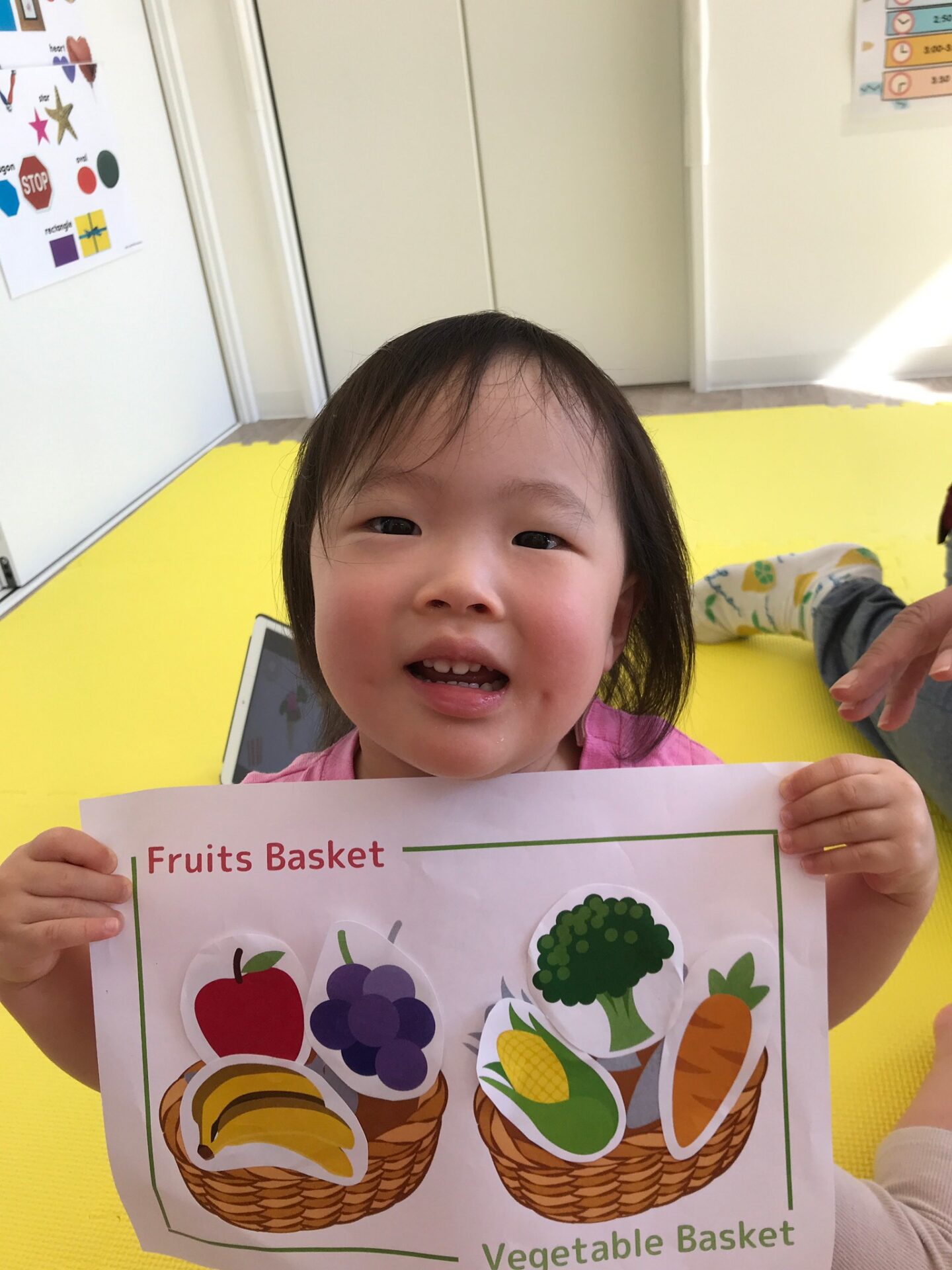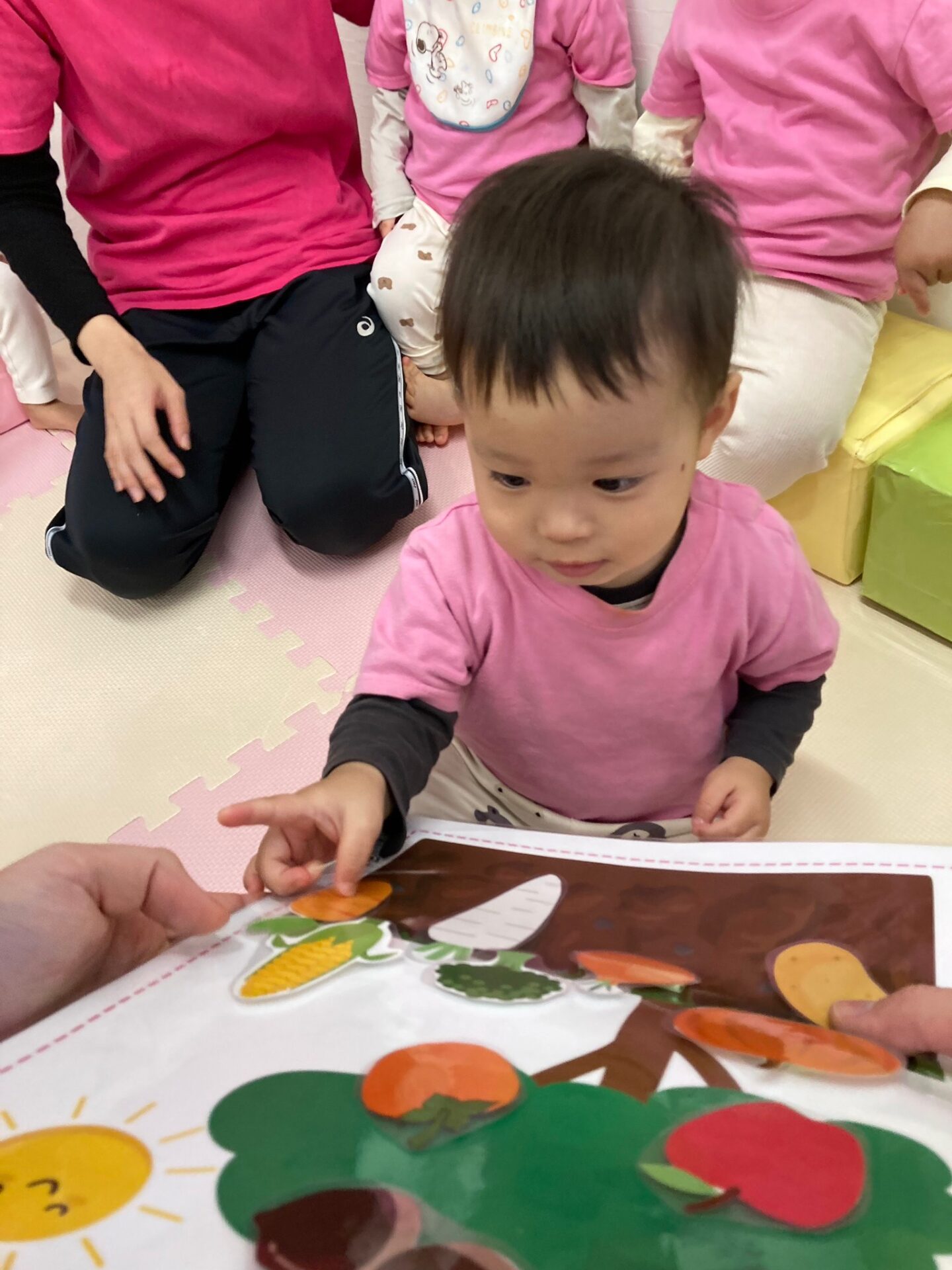 色の分別や大きさの概念、野菜の成長などを遊びながら伝えていきました。
