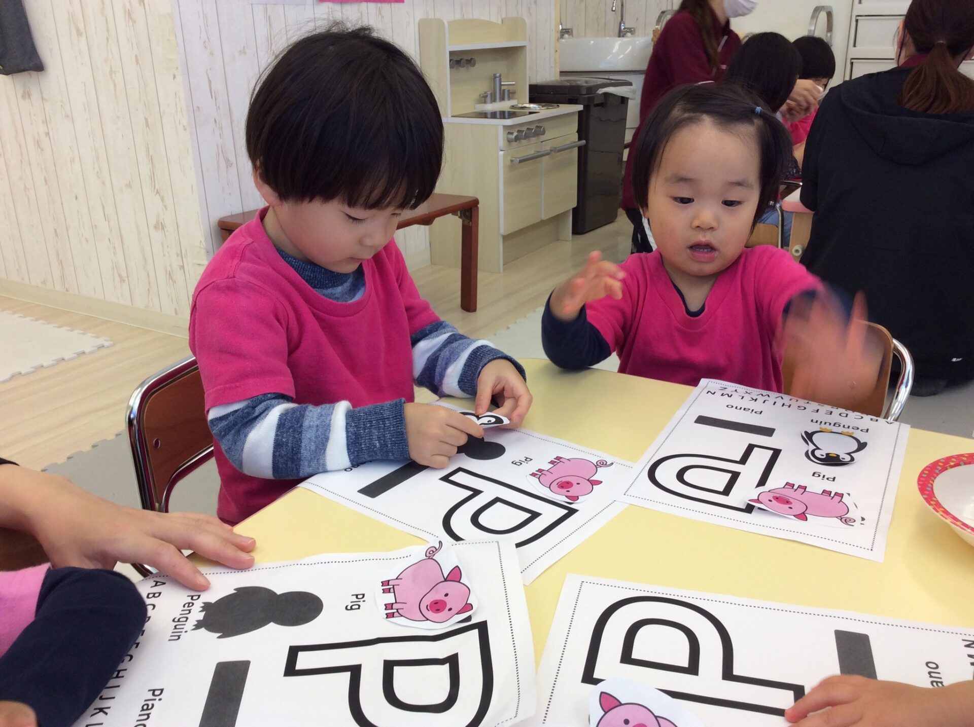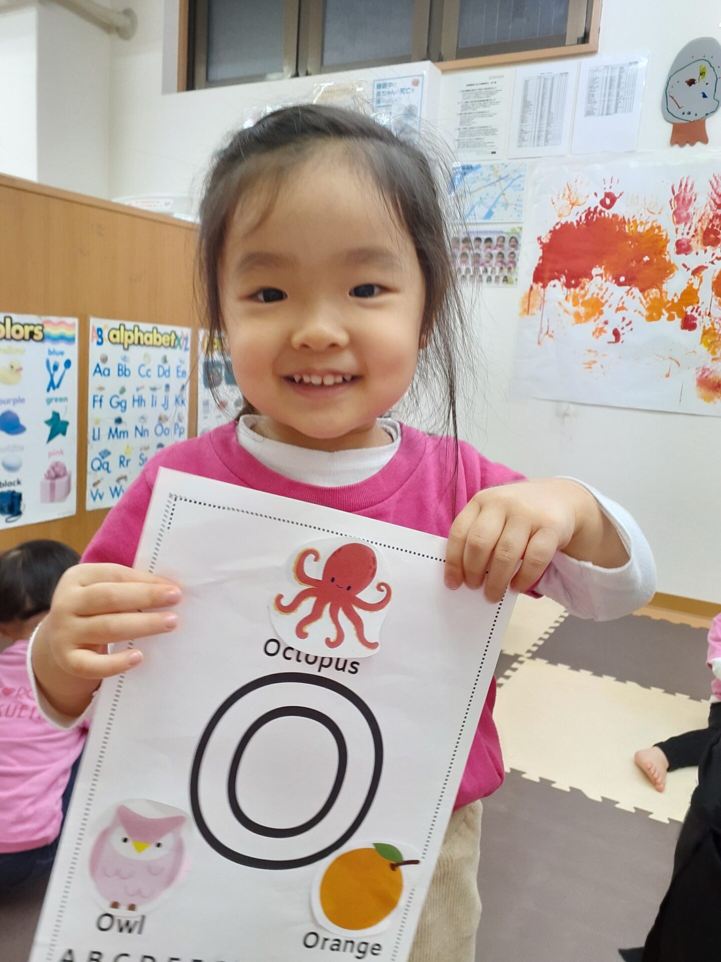 アルファベットワークは「O」Octopus, Orange, Owl,と「P」Pig, Penguin, Piano