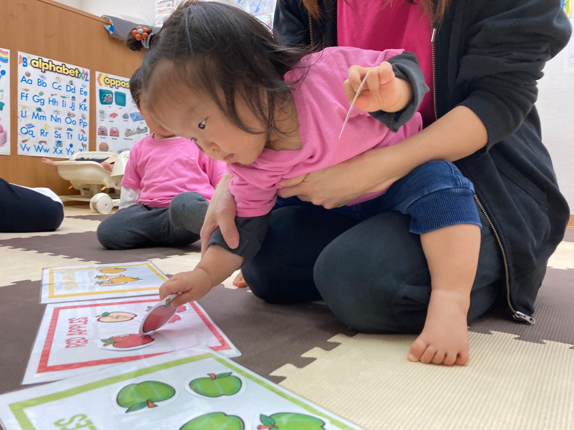 0歳児の子たちも月齢が進むにつれ、上手に貼り付けられるようになりました。