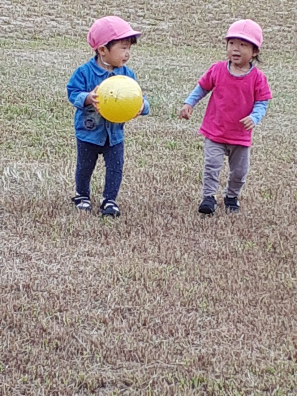広場ではボールを追いかけたりシャボン玉を楽しんでいました。