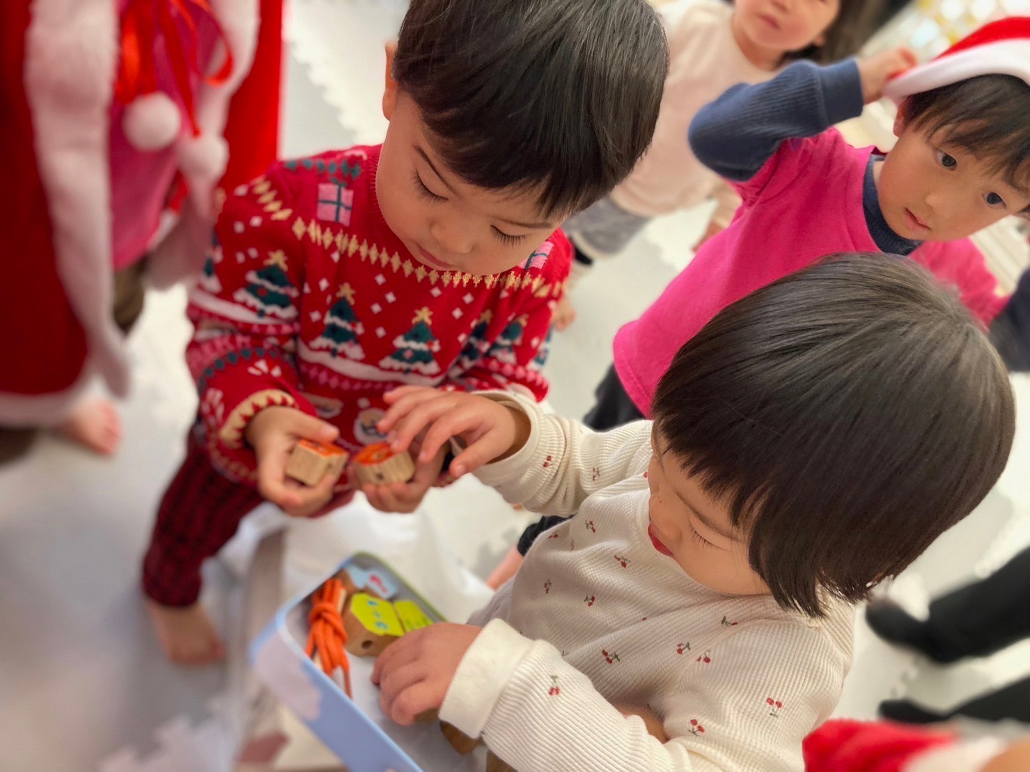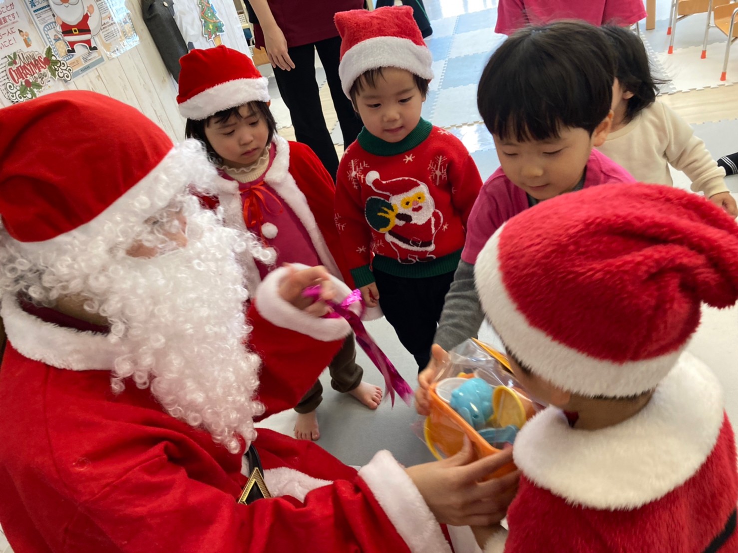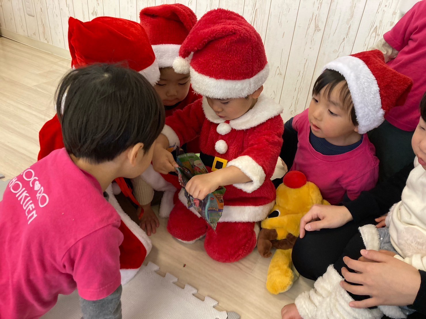子ども達は嬉しそうに「こうえん、いったときつかいたいね〜」と友だち同士で話していました。楽しい雰囲気の中、クリスマス会は終わりました。