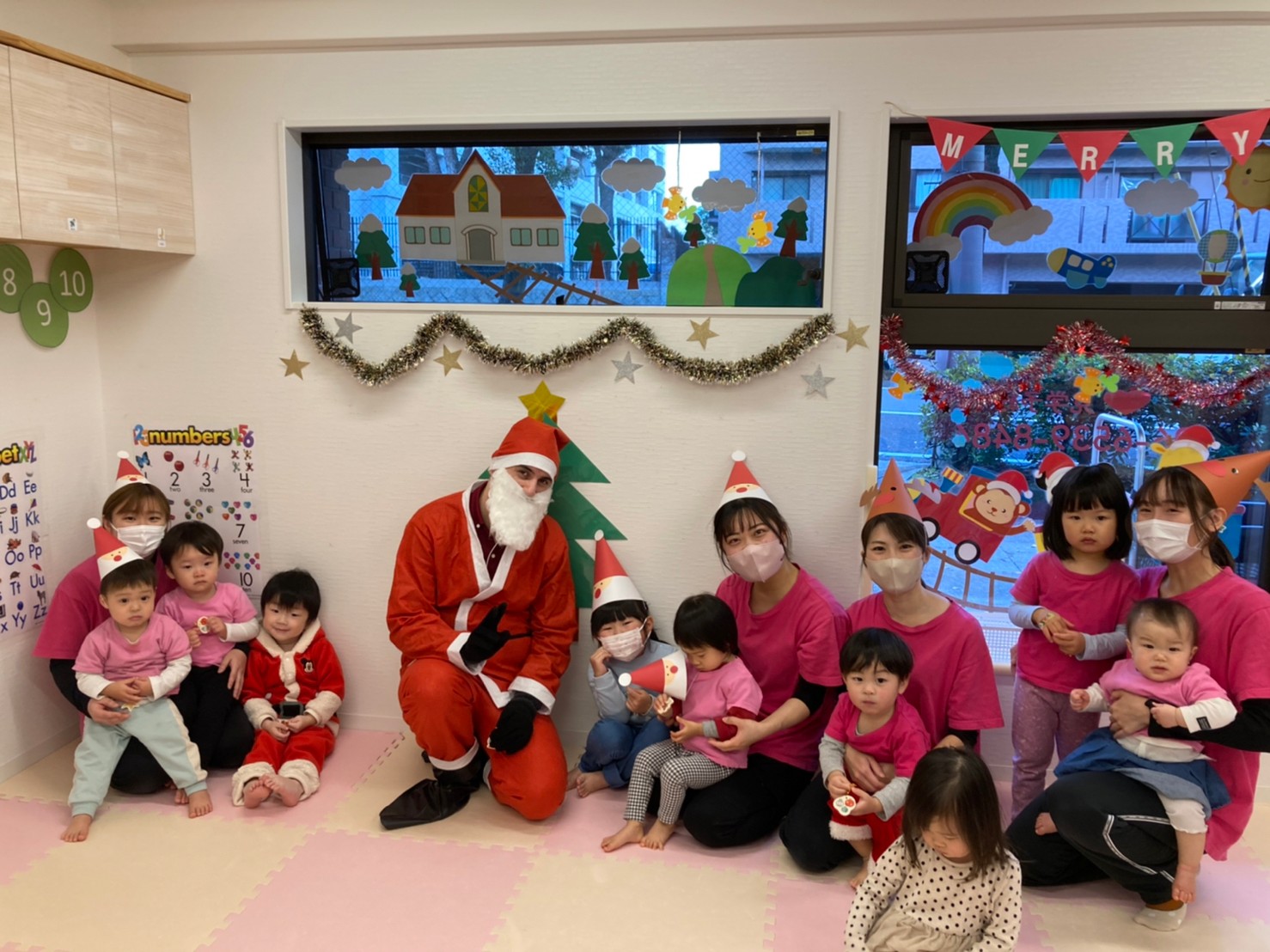 サンタさんが登場すると少しびっくりしながらも大喜びの子どもたち☆