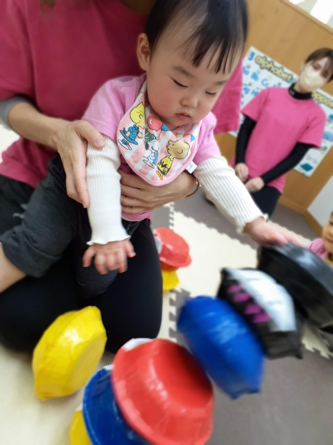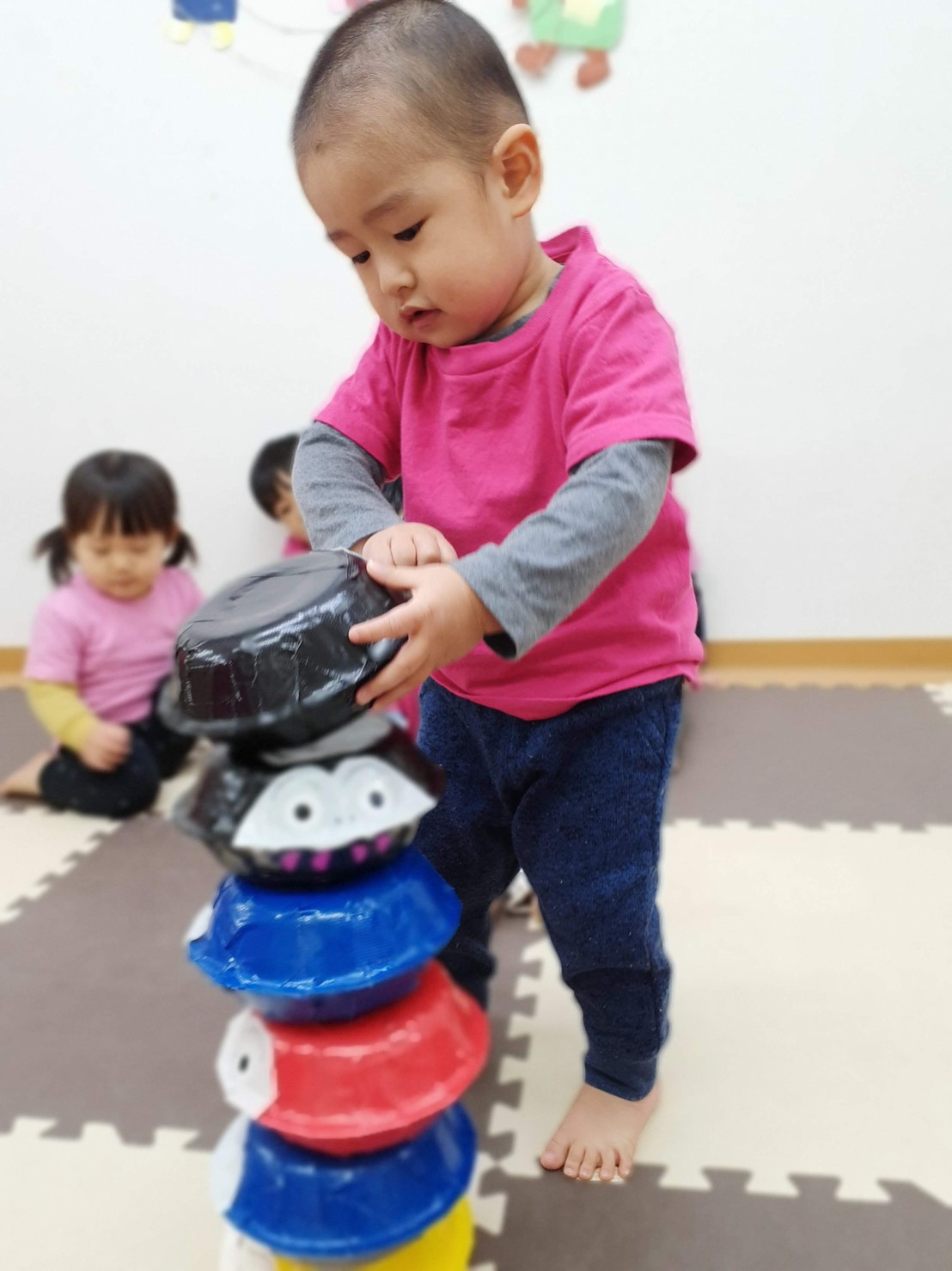 だるま積みは、積むことよりも倒れることが楽しくて慎重に積みながらもいつ倒れるかそわそわしている子どもたち!