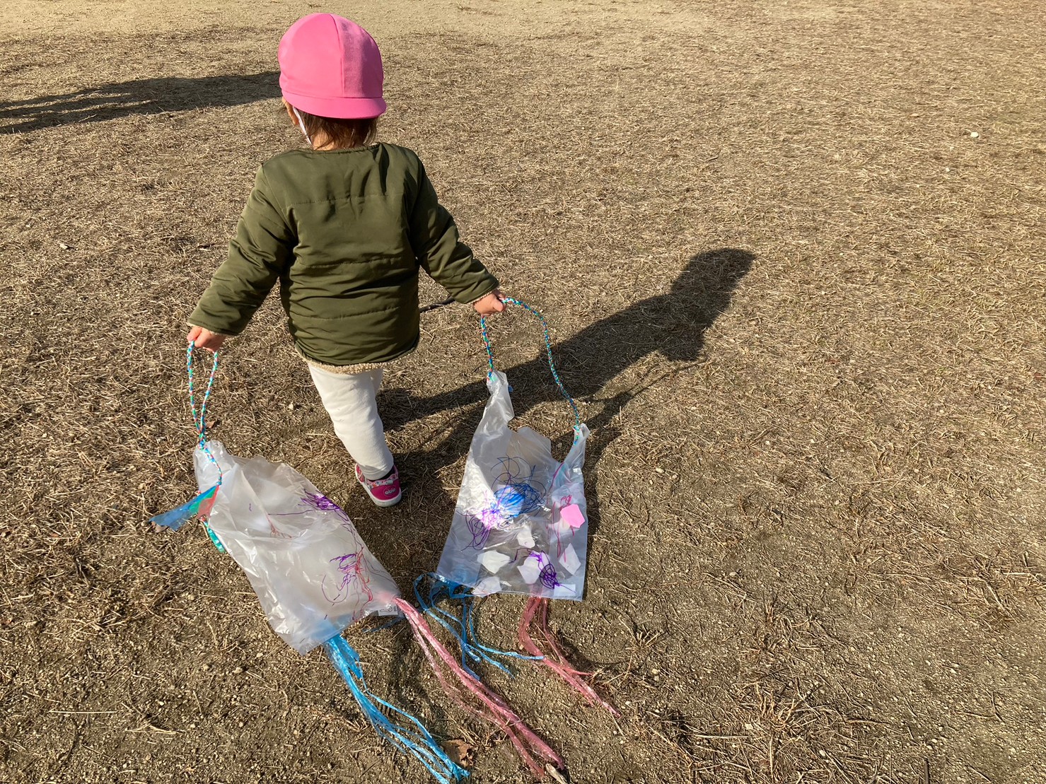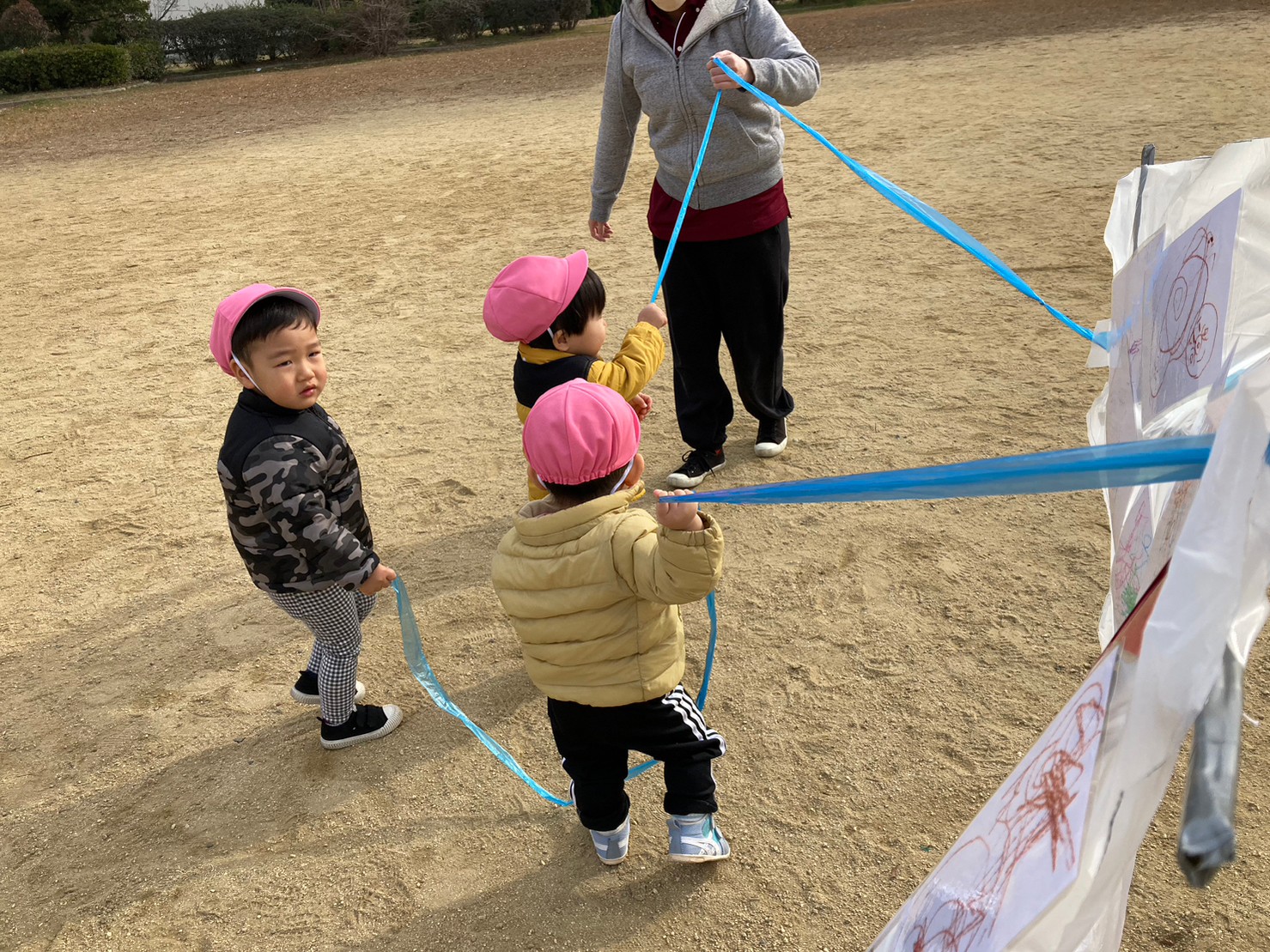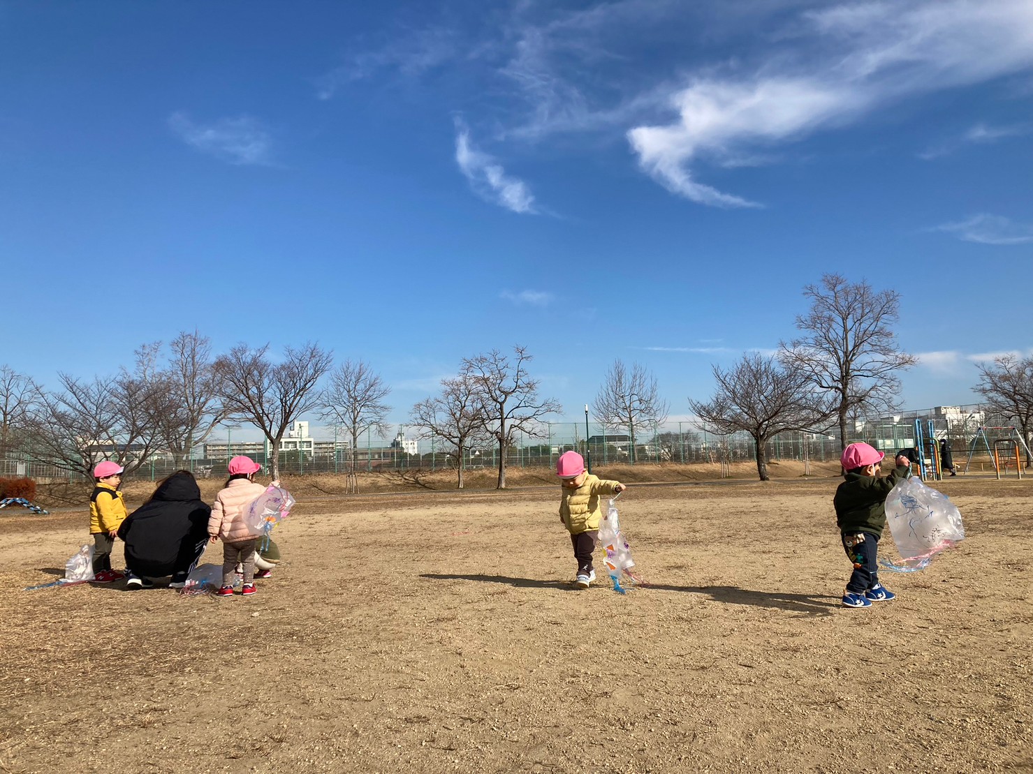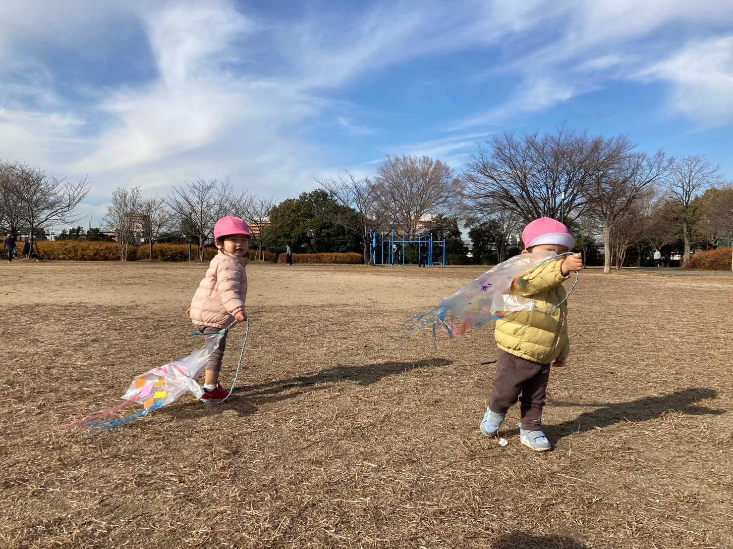 その他にも凧を作り、公園で元気いっぱい走り回りながら飛ばして遊びました。