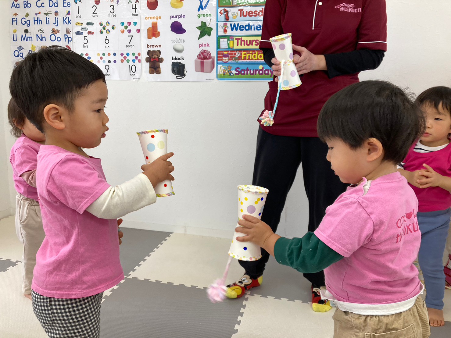 紙コップを両耳に当てて、糸電話のようにして楽しんでいる姿も見られました。