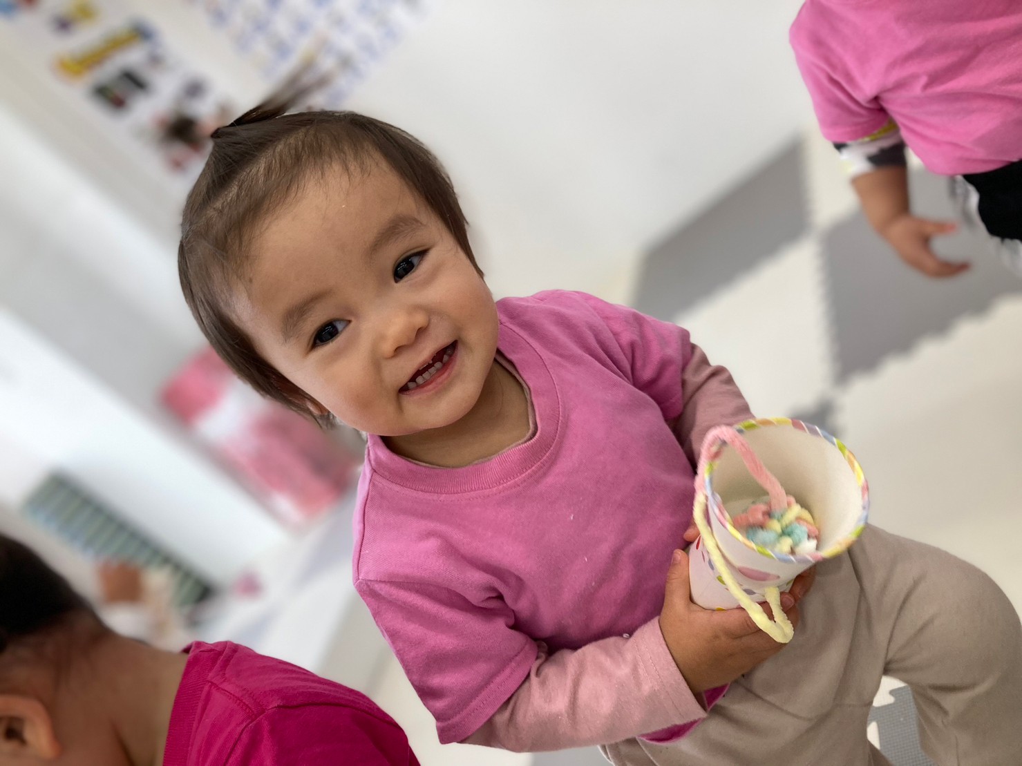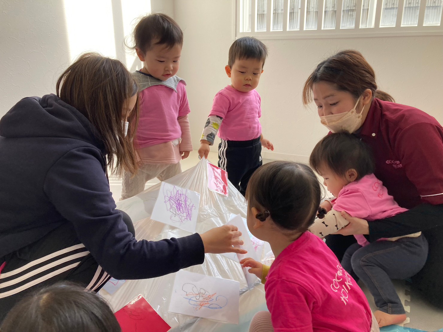 1歳児は、歌に合わせて「あお!」や「ブルー!」等、日本語・英語で答えてくれ、一緒に歌ってくれています。