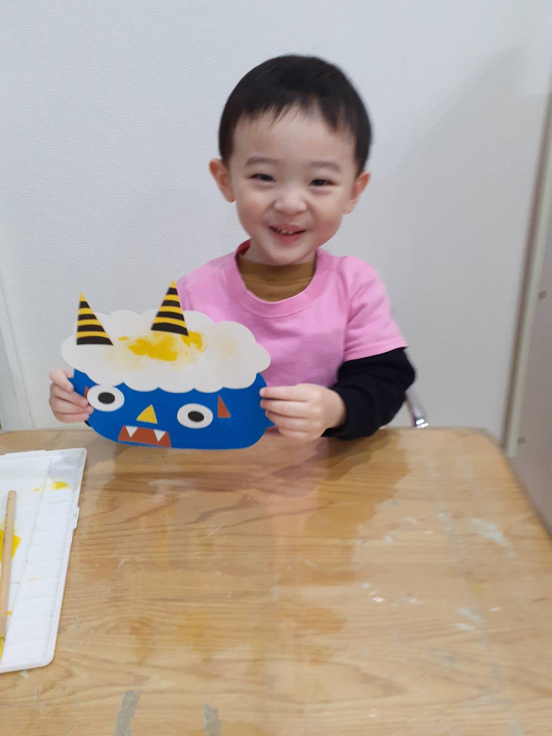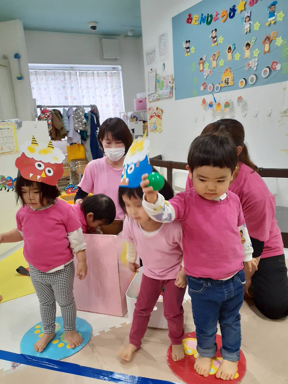 豆をいっぱい当てると鬼が後ろに倒れるように設置していましたが、なかなか倒れず困っていました(^^)