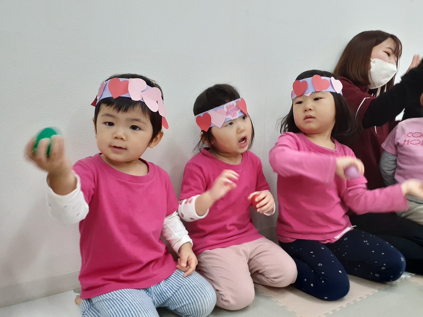 劇遊びに出てくる歌の他に、バレンタインにちなんで”I love you!”の歌詞が出てくる「Skidamarink」スキダマリンクという歌を手遊びしながら歌いました。