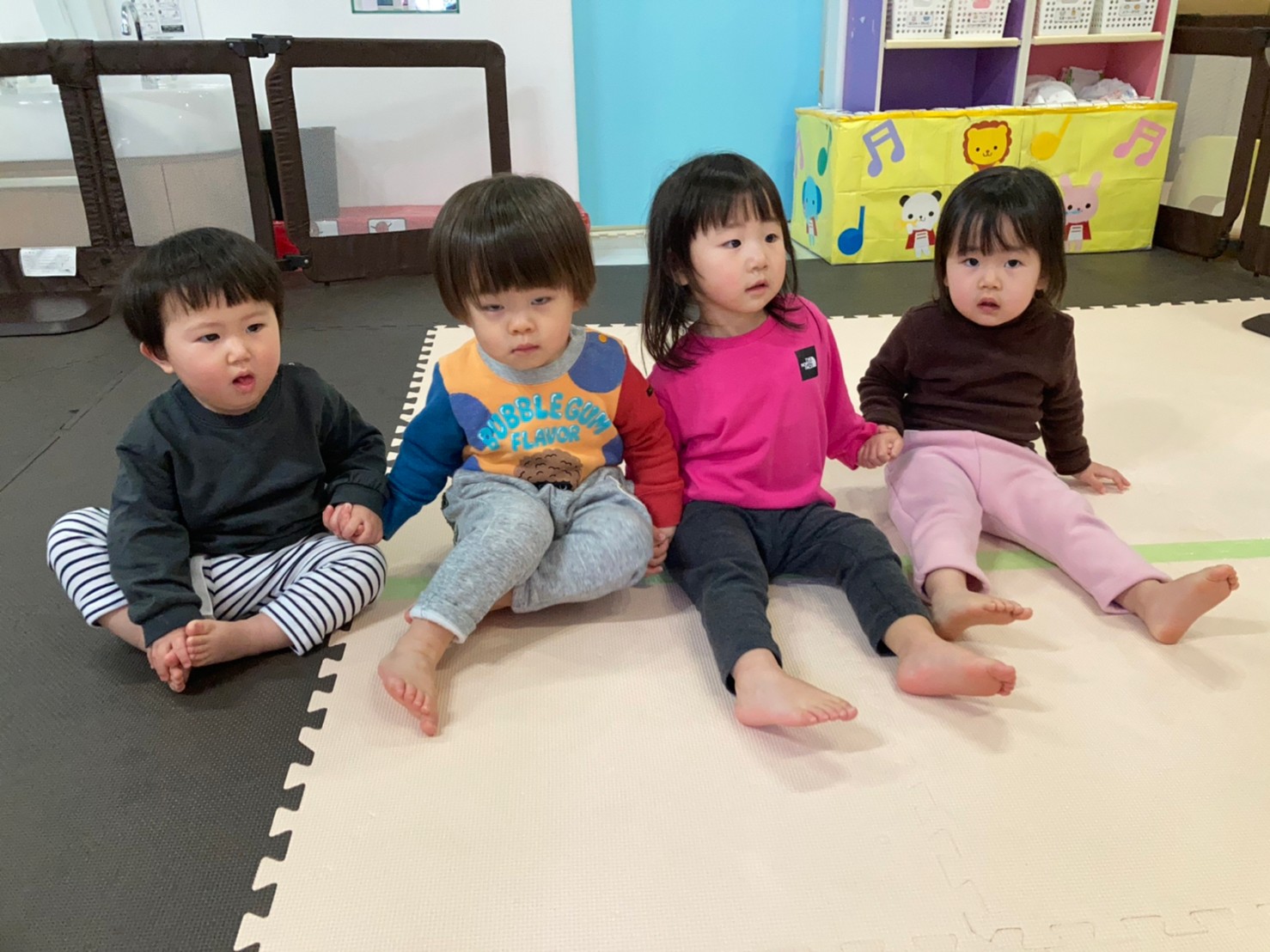お友達同士で手を繋ごうと声を掛け合ったり、少しずつ歌詞が言える子も出てきました。