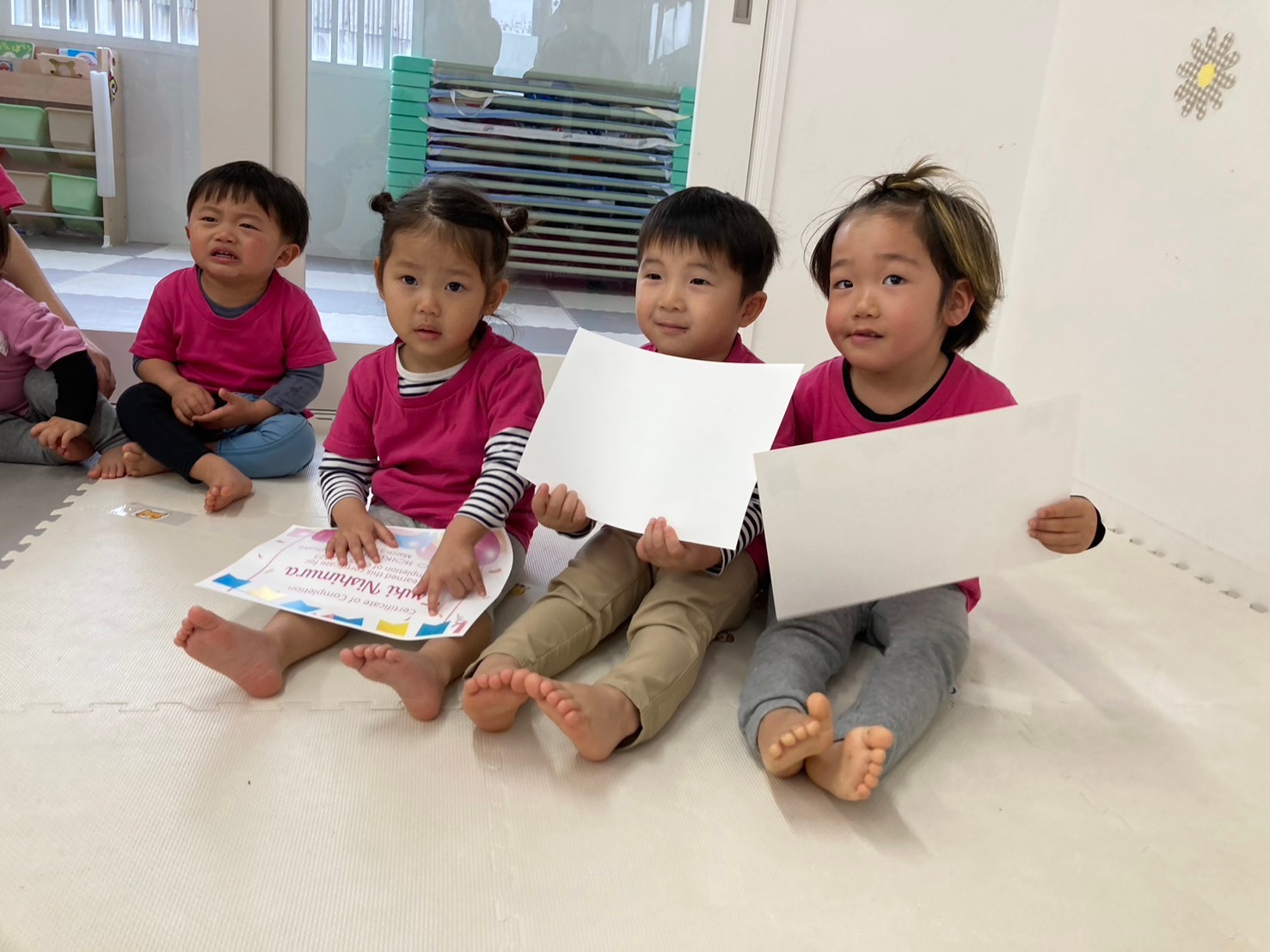 おもちゃのチャチャチャを披露したり、保護者の方にプレゼントを渡しました。
