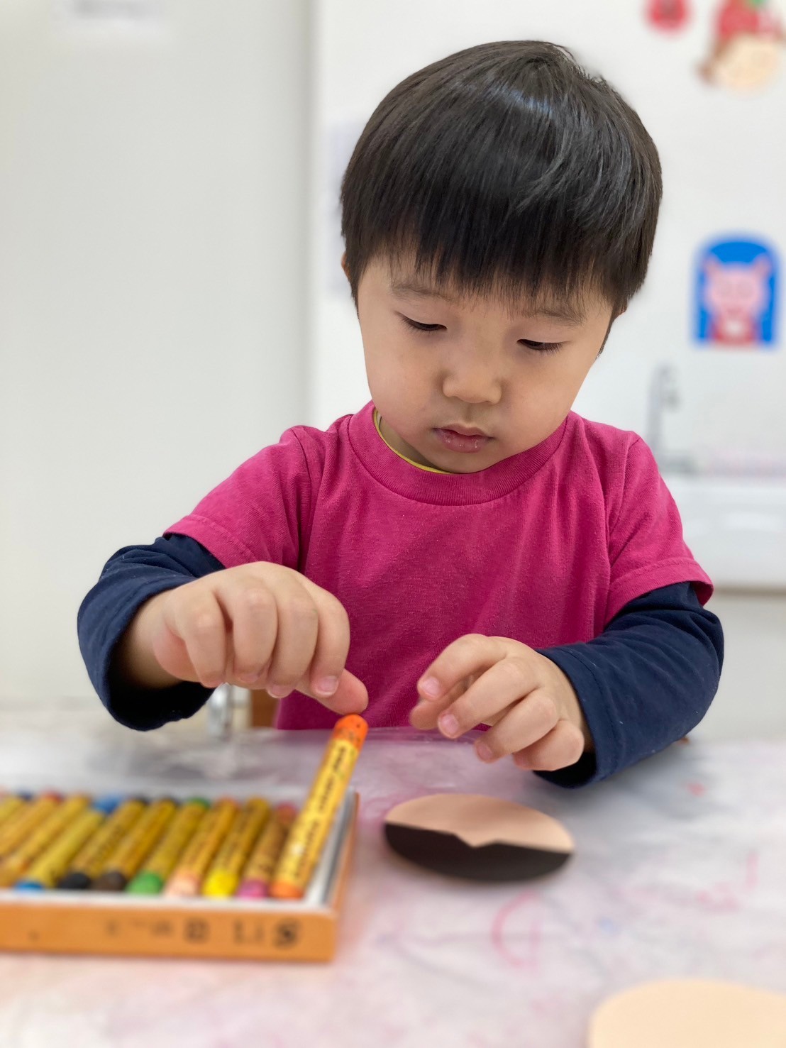 顔もシールやクレパスで描くと、さまざまな表情になり、とても可愛らしかったです!