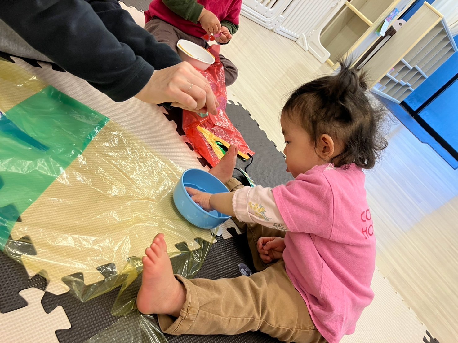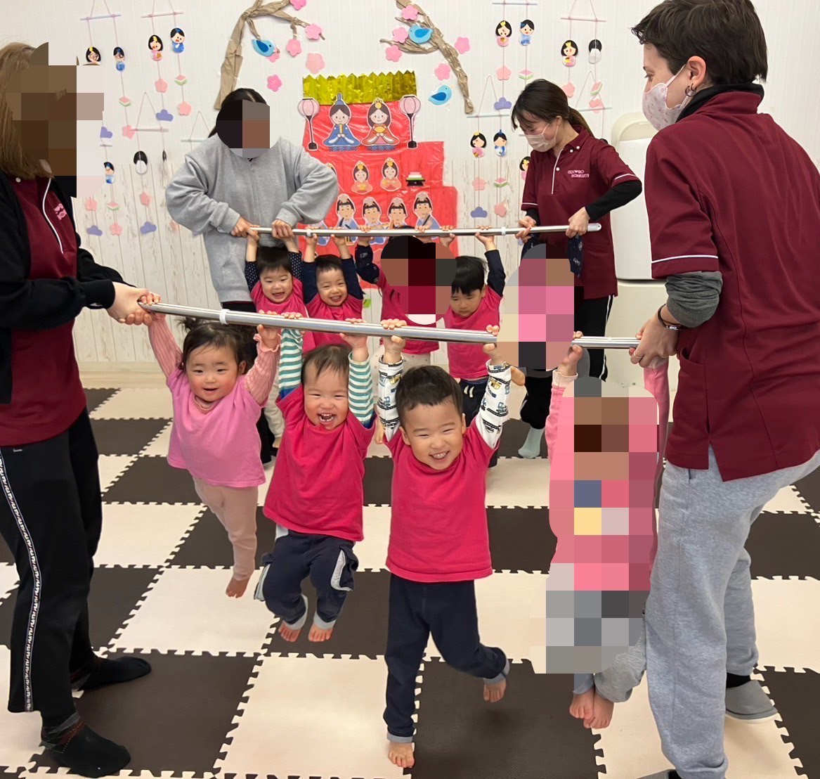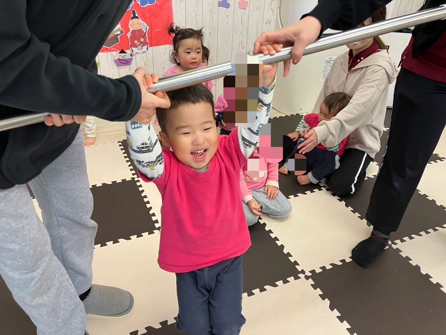 室内では、棒にぶら下がって遊ぶことが子ども達のブームです。