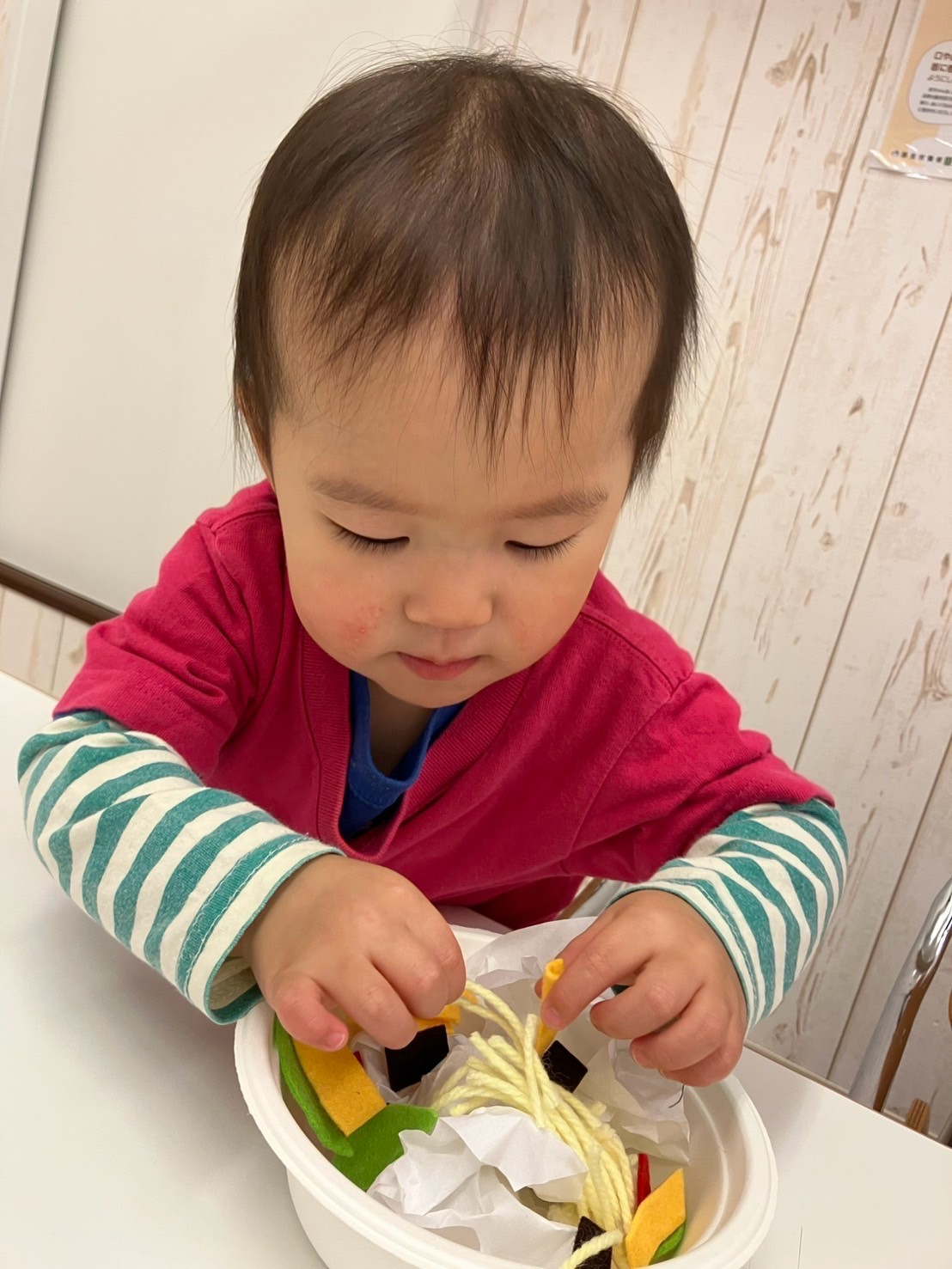 フェルトや半紙を具材に見立てて、ちらし寿司を作りました。