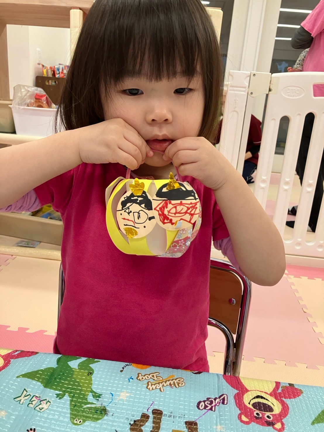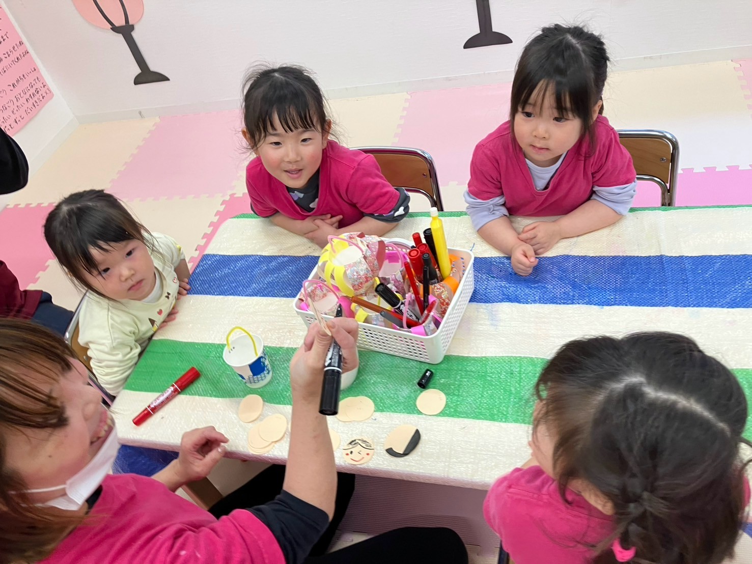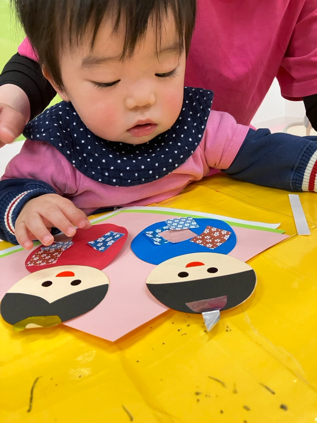 絵本やクイズを通してひなまつりの由来を知ったり、製作ではおひなさまやおだいりさまの顔を描いて可愛いぼんぼりを作りました。
