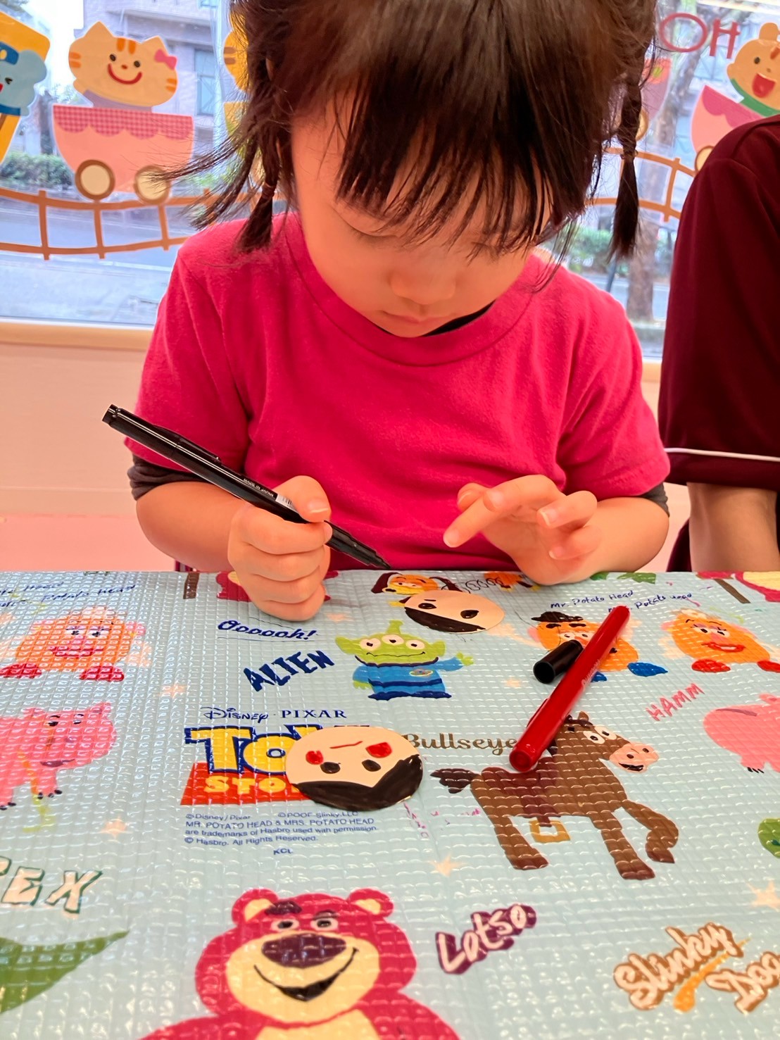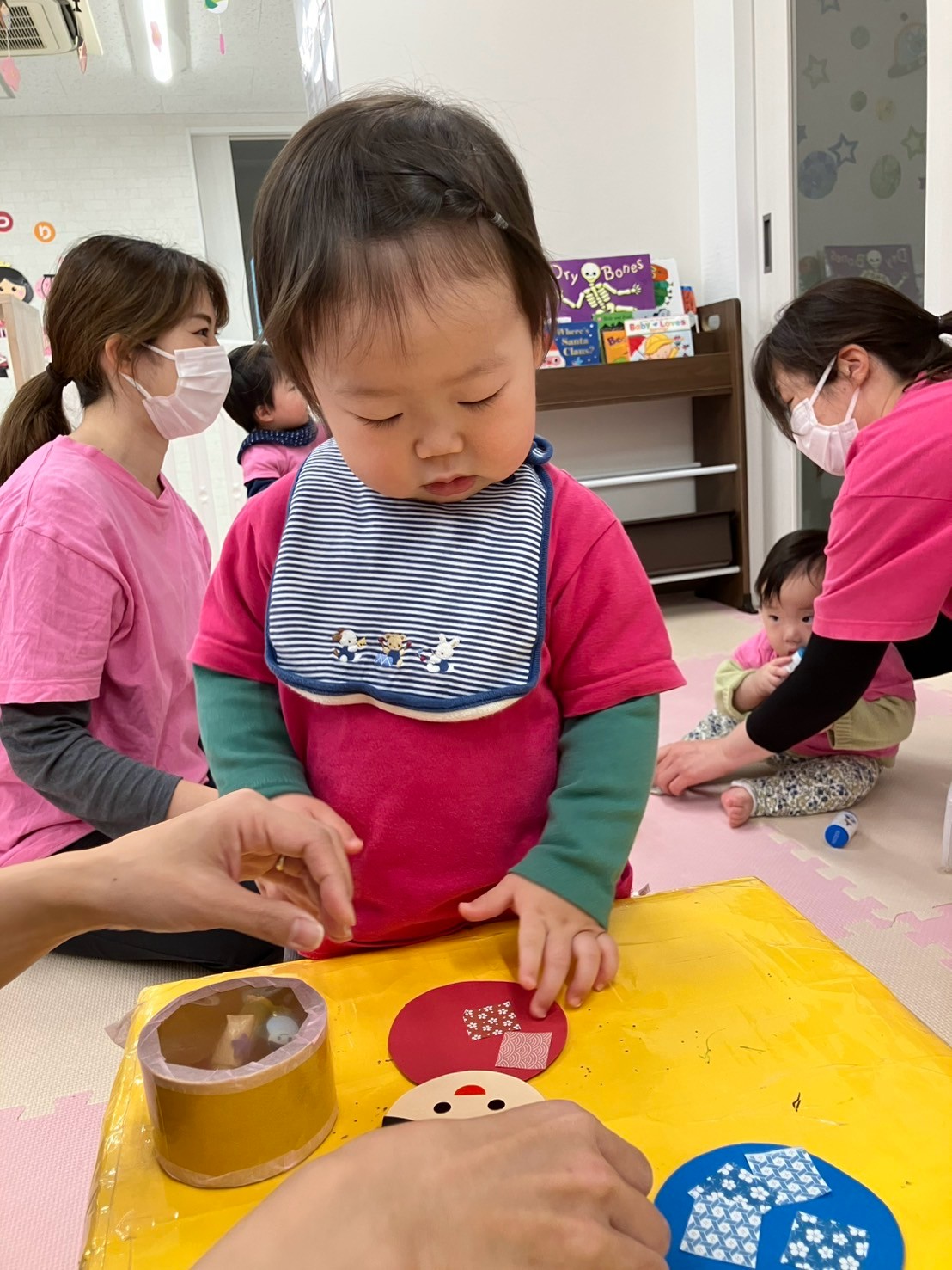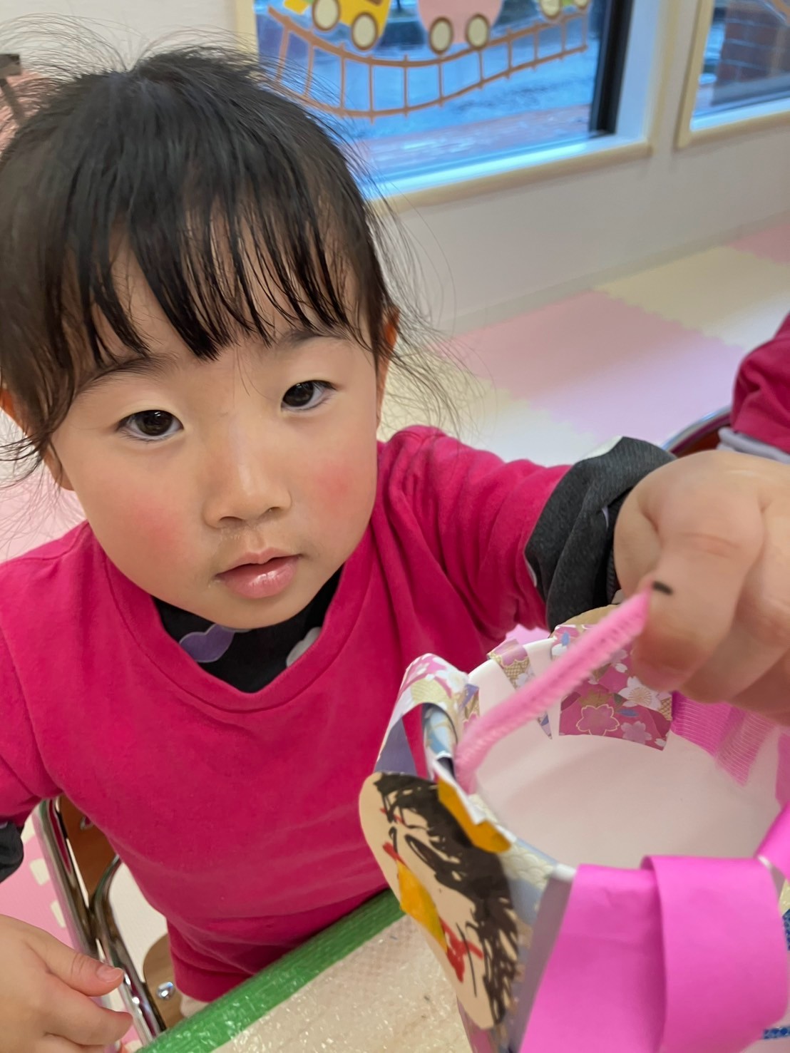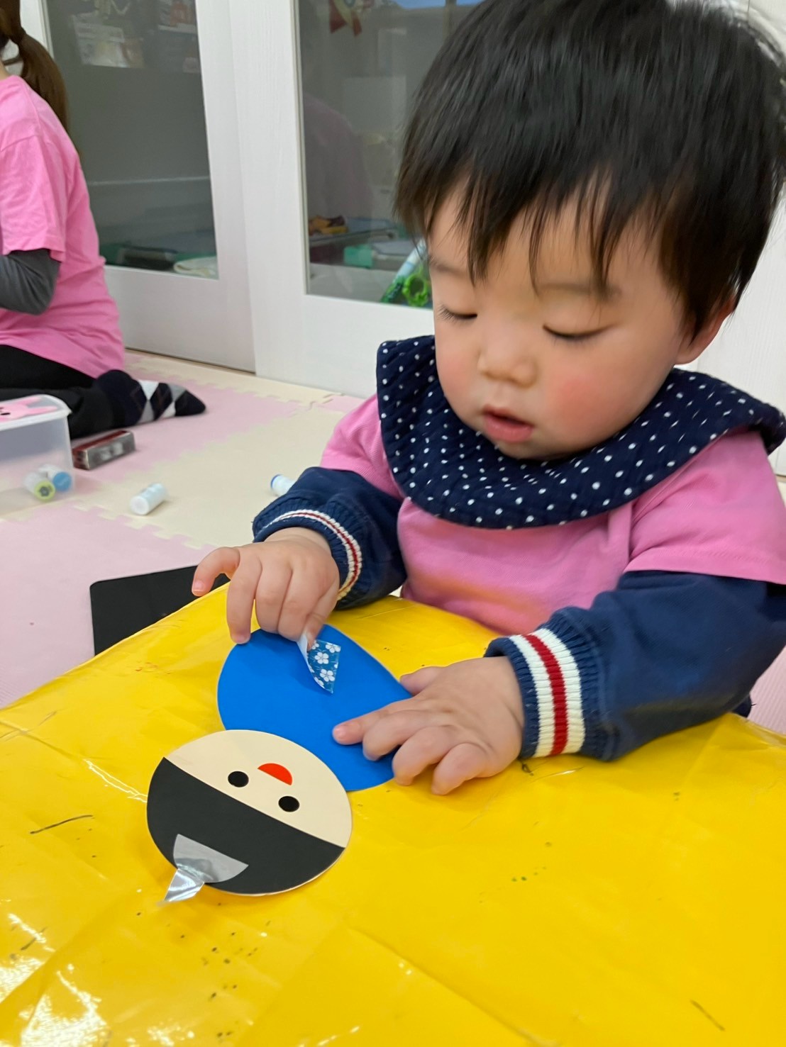 絵本やクイズを通してひなまつりの由来を知ったり、製作ではおひなさまやおだいりさまの顔を描いて可愛いぼんぼりを作りました。