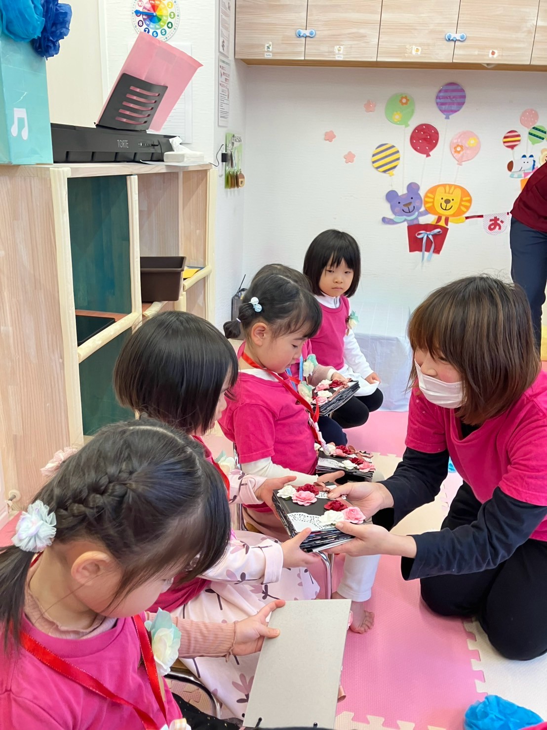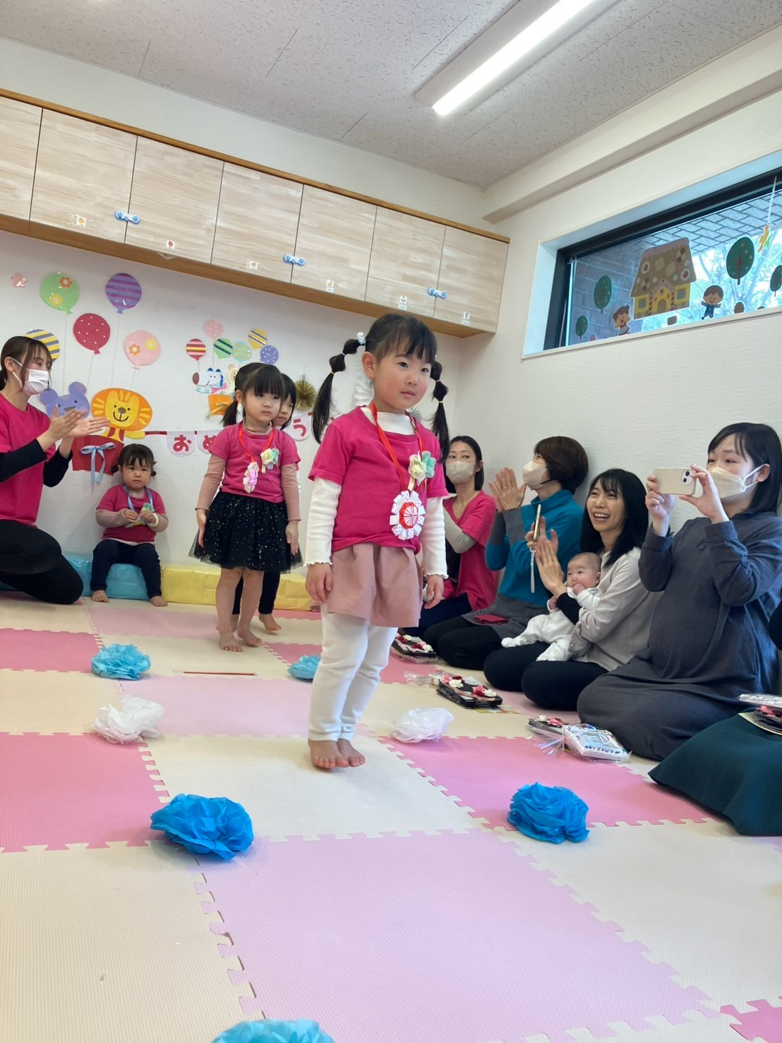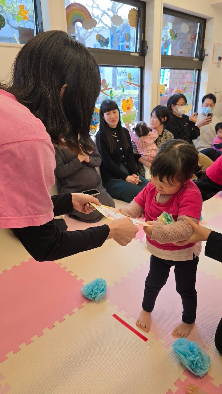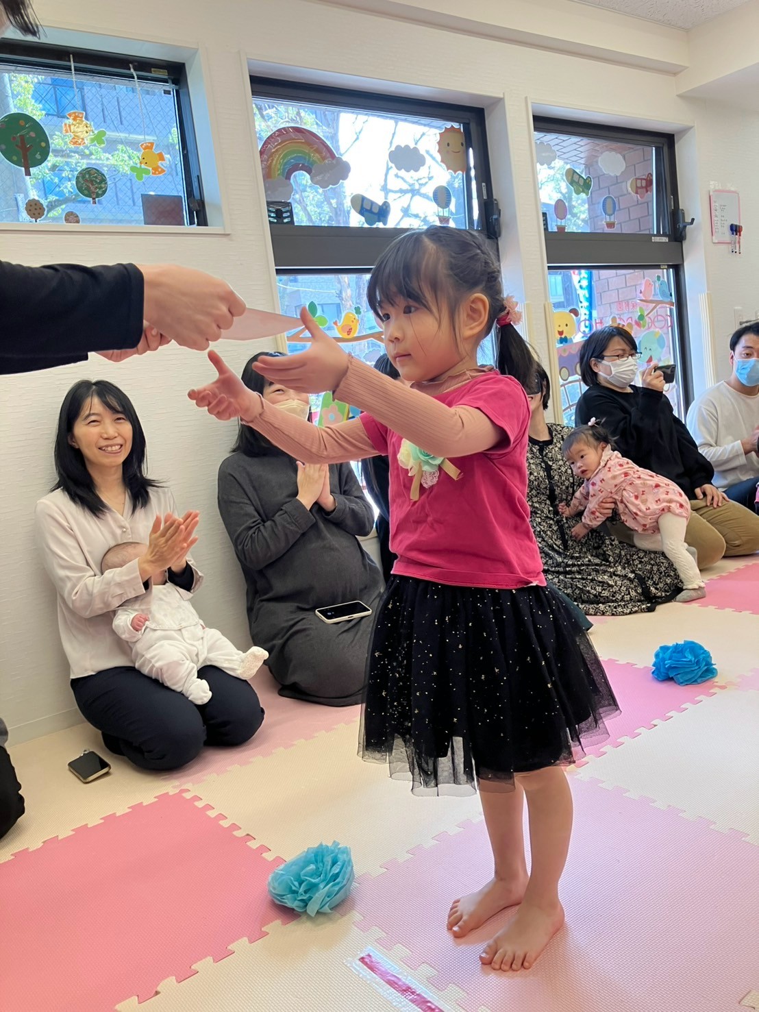 お名前を1人ずつ呼ばれると元気に返事をきて証書を受け取ったり、みんなで練習していた歌を披露したりこの一年での成長をたくさん見てもらうことができました。