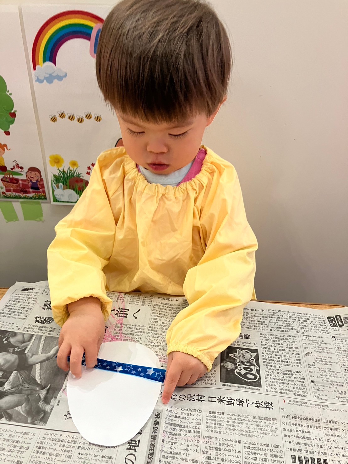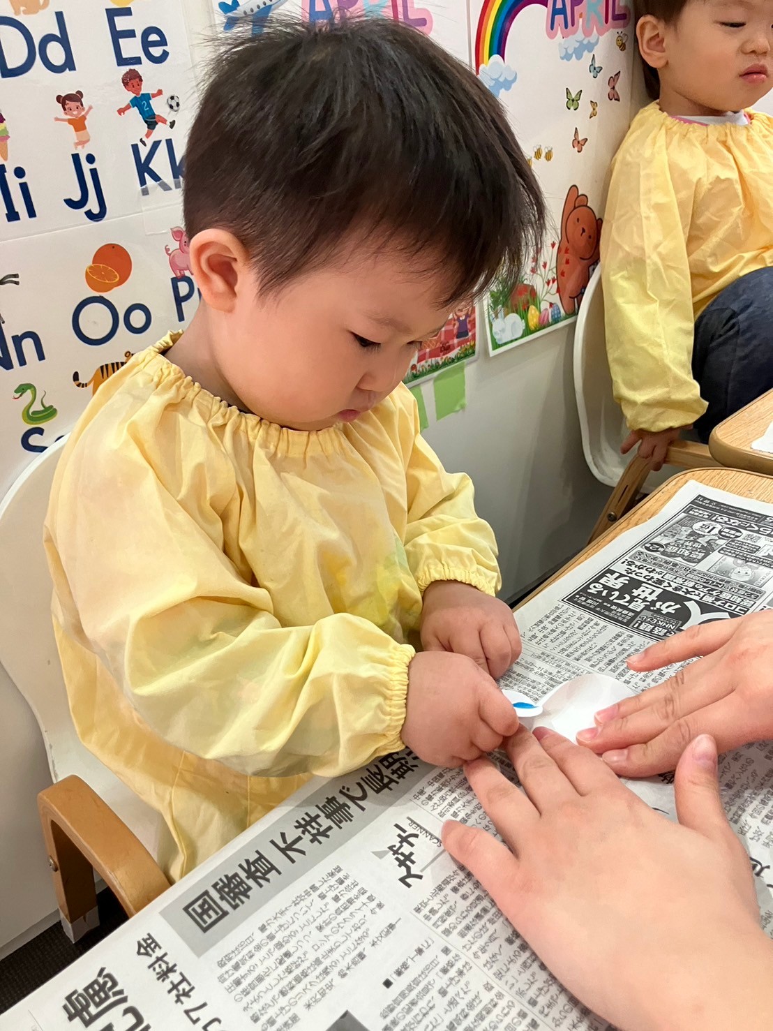 絵の具の感触に触れたり、マスキングテープで好きに貼ったり楽しんでくれていましたよ♪
