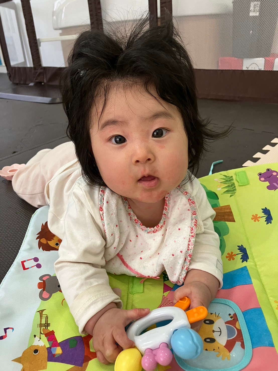 もうすぐ1ヶ月を経とうとしていますが、今年度は赤ちゃんが2人新しく入園して来てくれました。