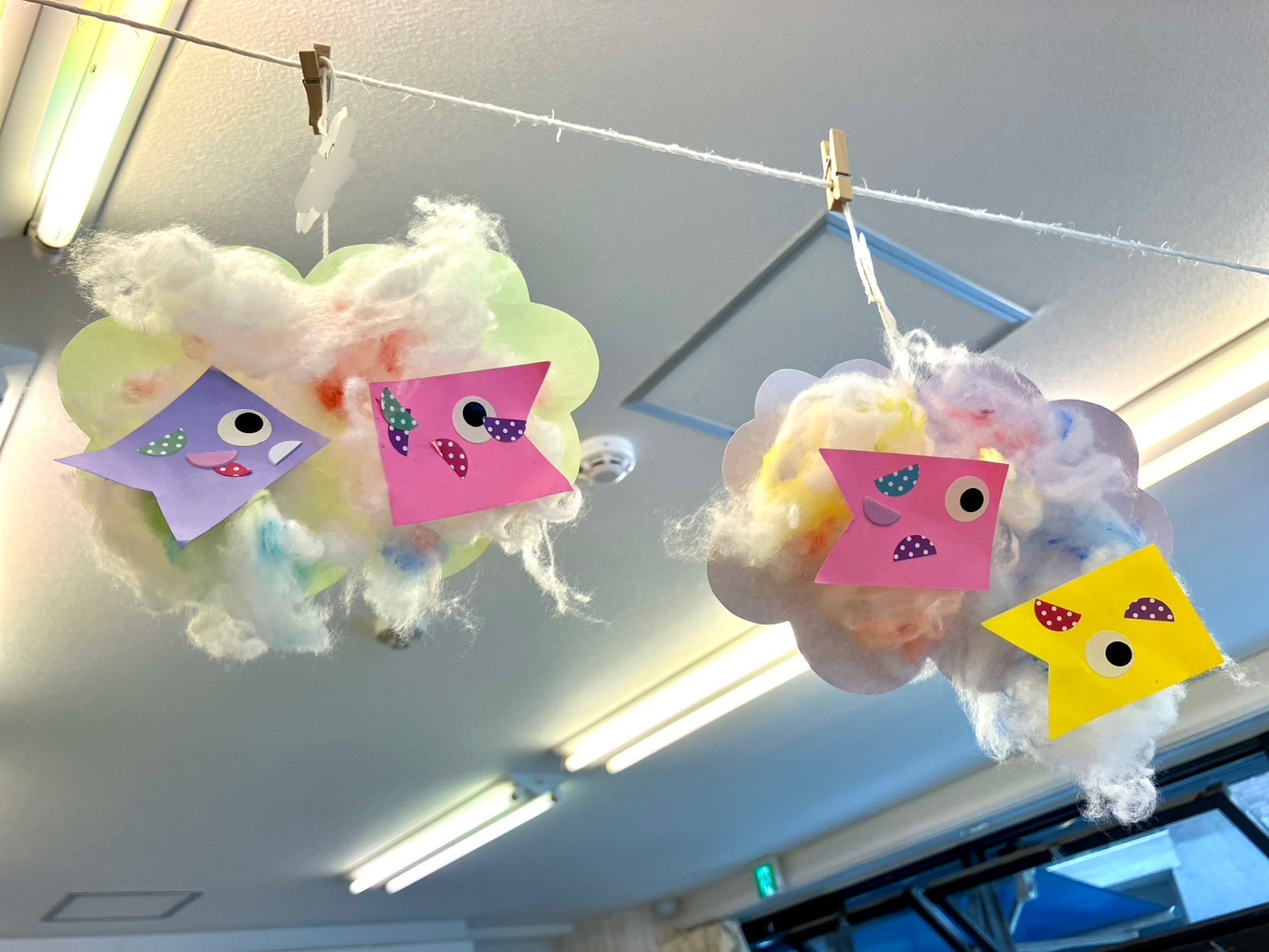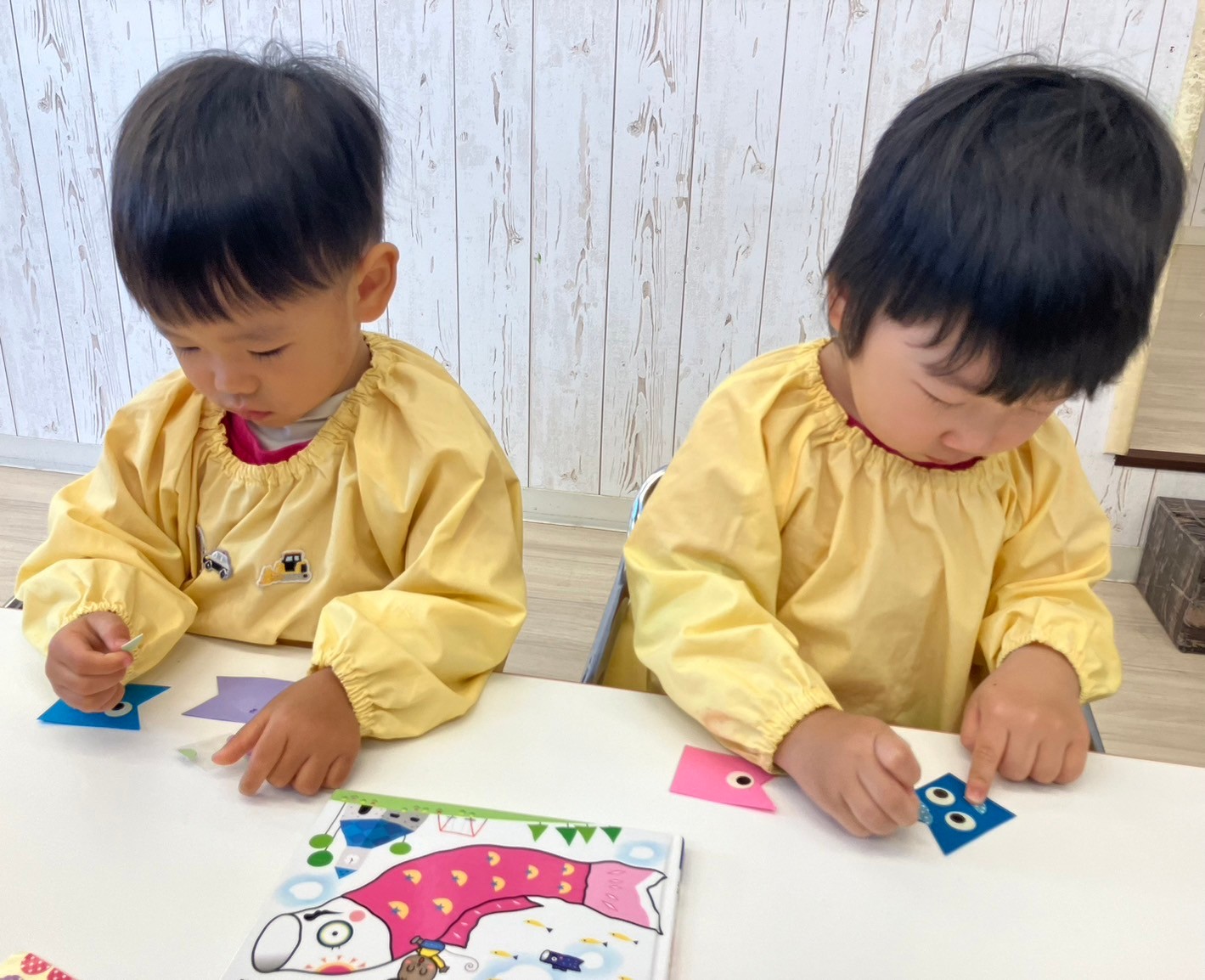 「おめめ、なんこ、つけようかな〜?」「(こいのぼりさん)めちゃくちゃきもちよさそうやでー!」と製作中、沢山お話しをしていましたよ。