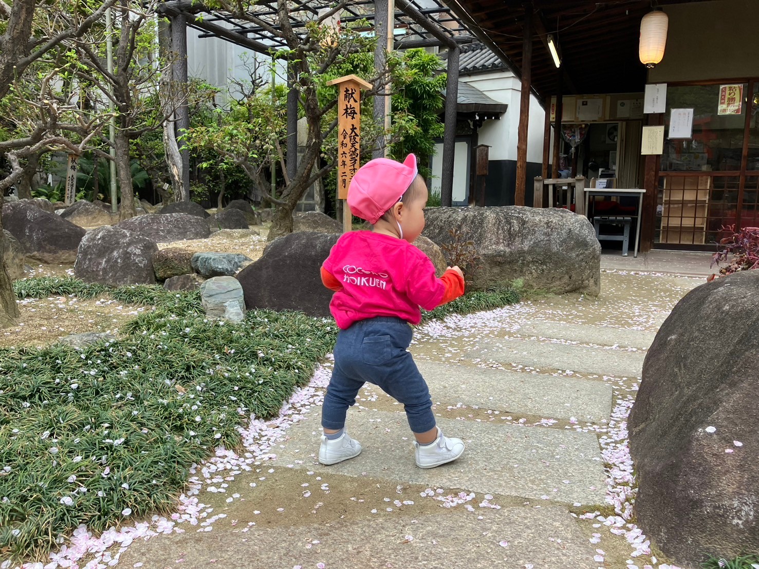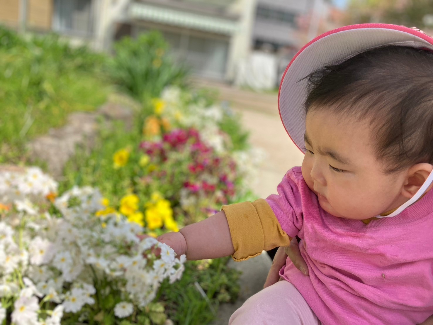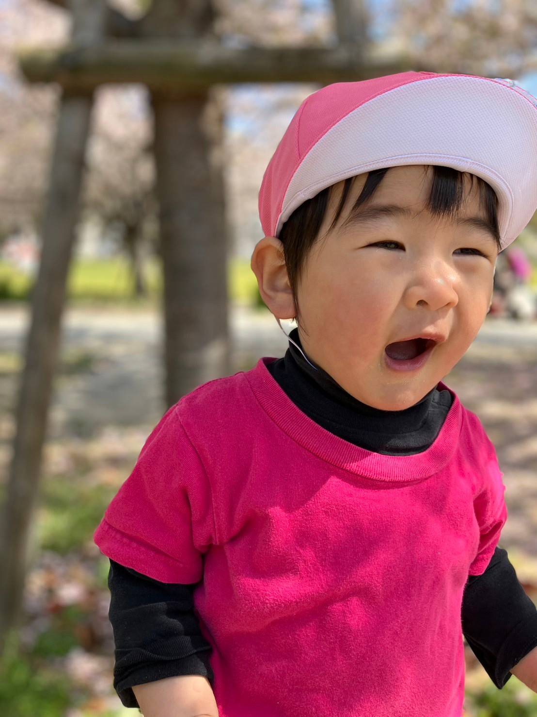 春の自然に興味津々の子ども達。桜の花びらを見つけては、「きれ〜!」「わあーーー!」と大喜び。