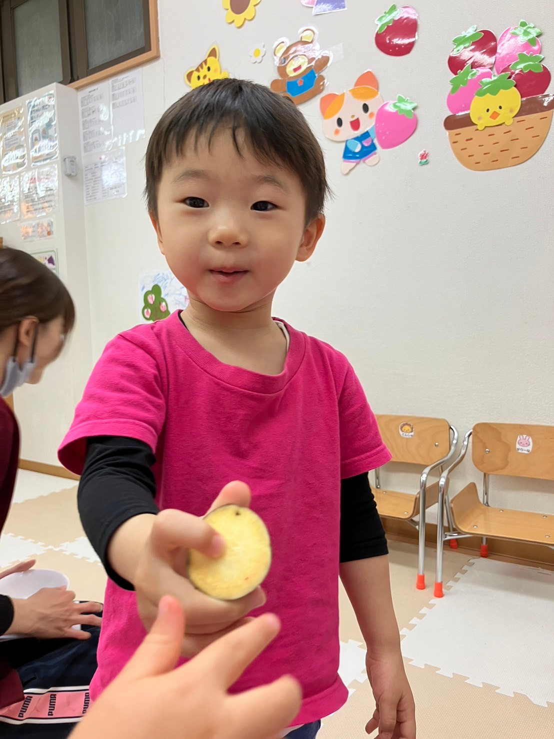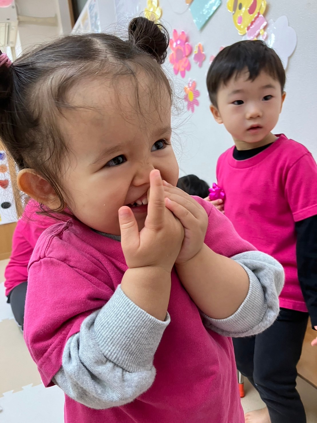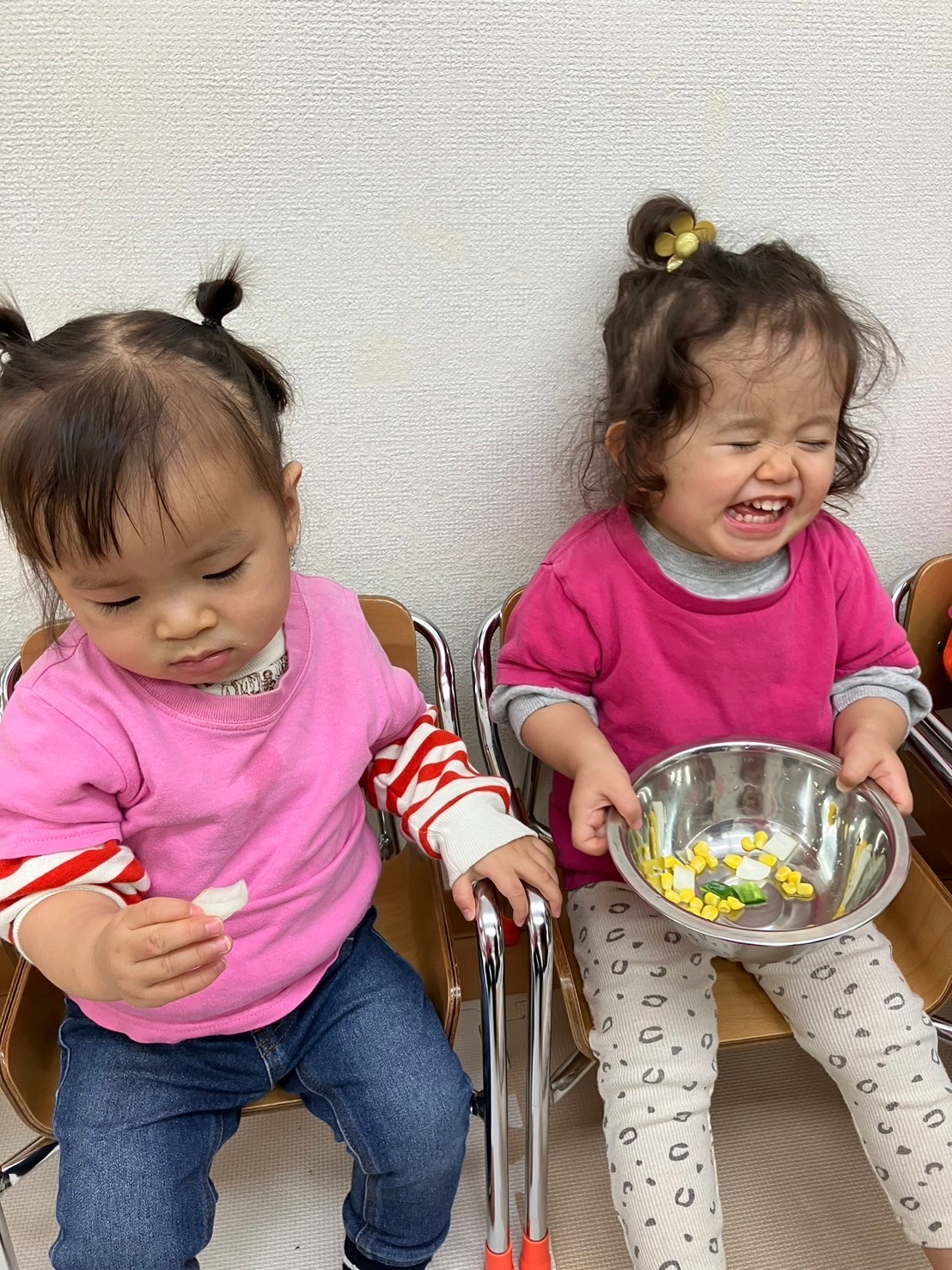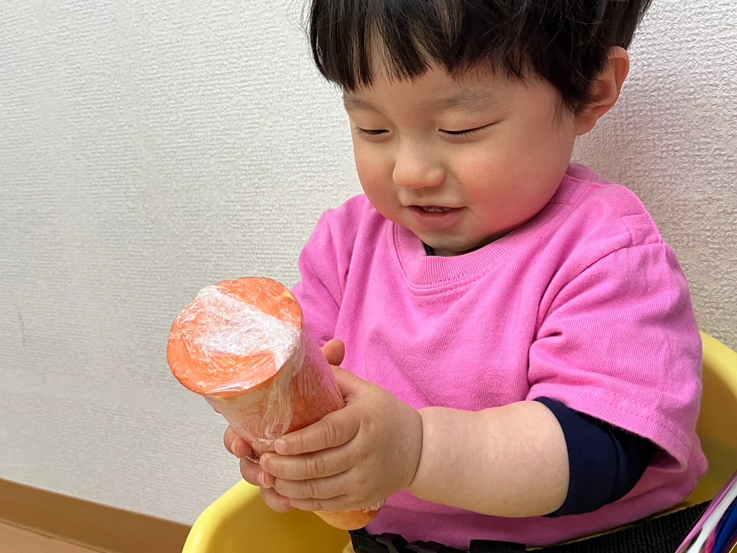 「ふふ♪」と嬉しそうな顔や、酸っぱい顔、目を細める顔…百面相をする子どもたちに思わず笑ってしまいます。