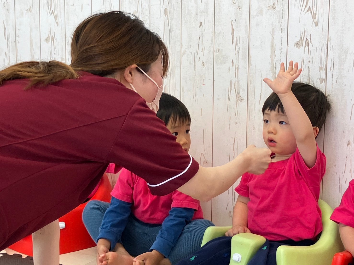 また、お名前呼びでは0.1歳児のお友だちに「○○くん(ちゃん)」と呼んでみると「はーい!」と手を真っ直ぐ挙げ返事をしてくれるようになりました!