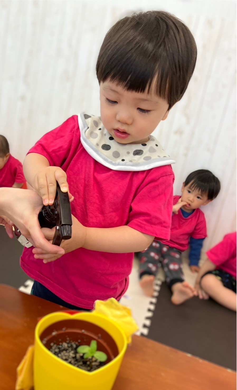 皆で土の匂いを嗅いだり、触れたりし、初めての体験に目を丸くする姿も見られました。