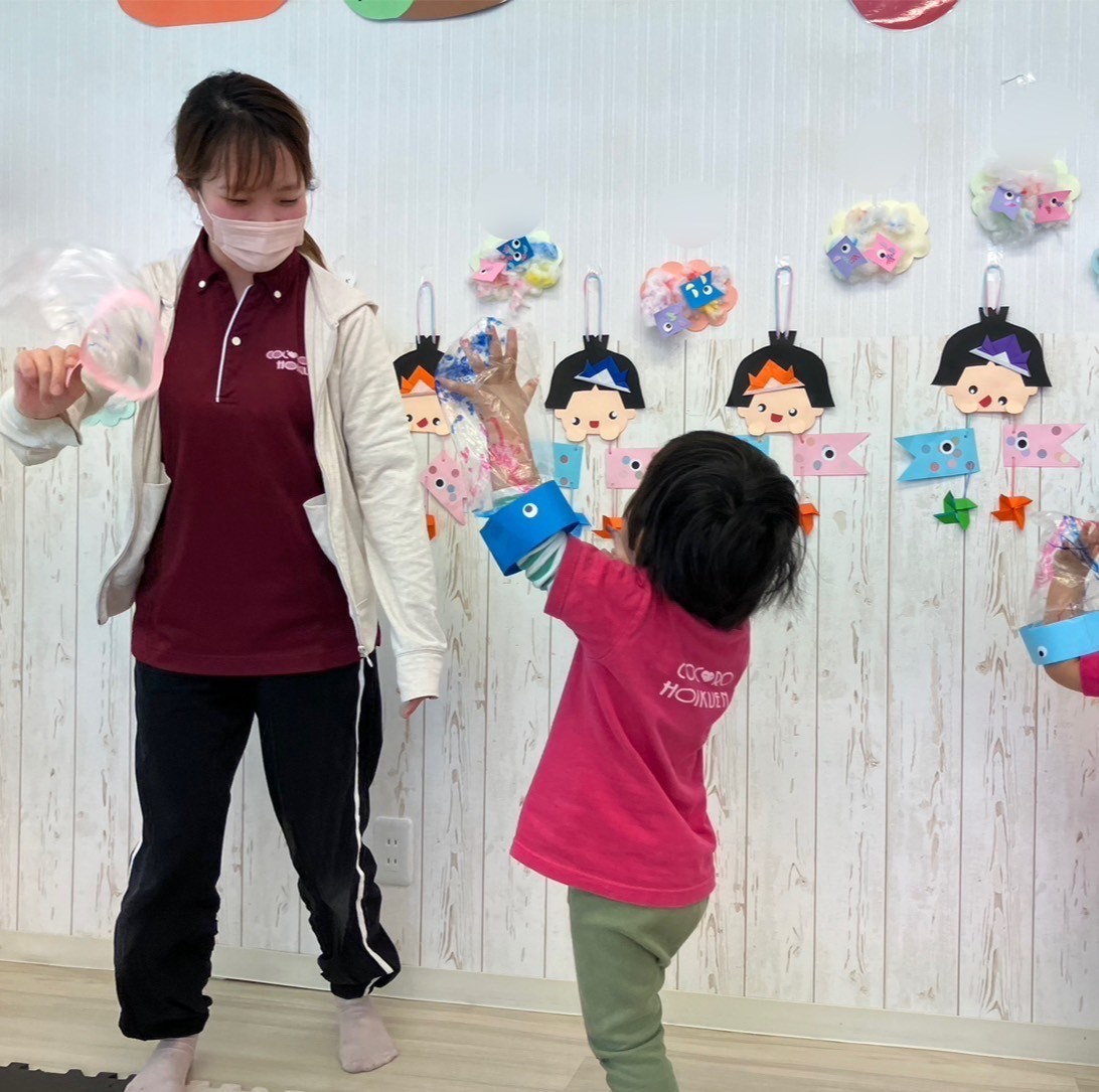 保育室には沢山の鯉のぼりが飾られ、賑やかな雰囲気の中こどもの日の会が始まりました。