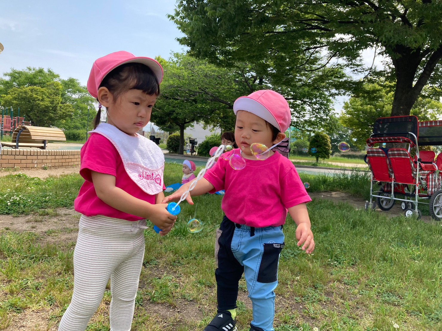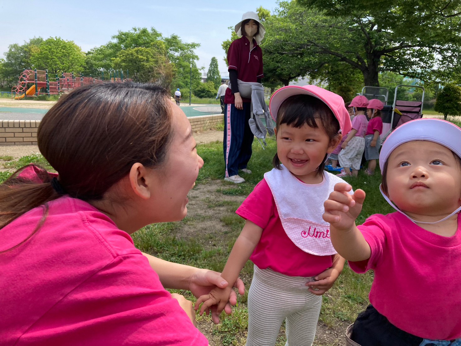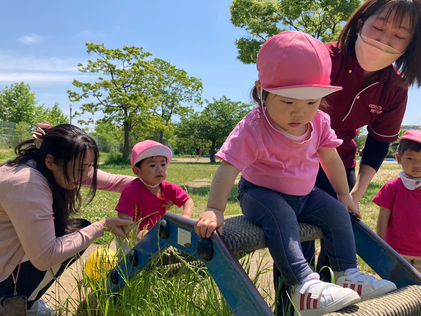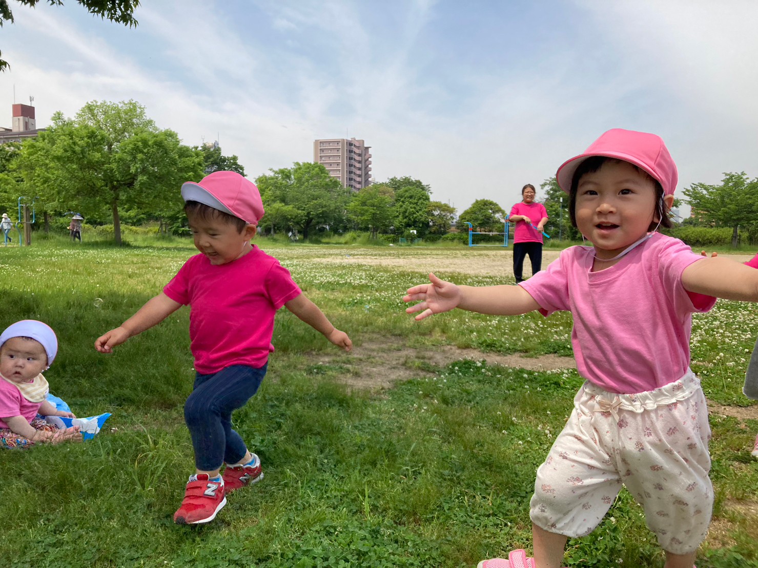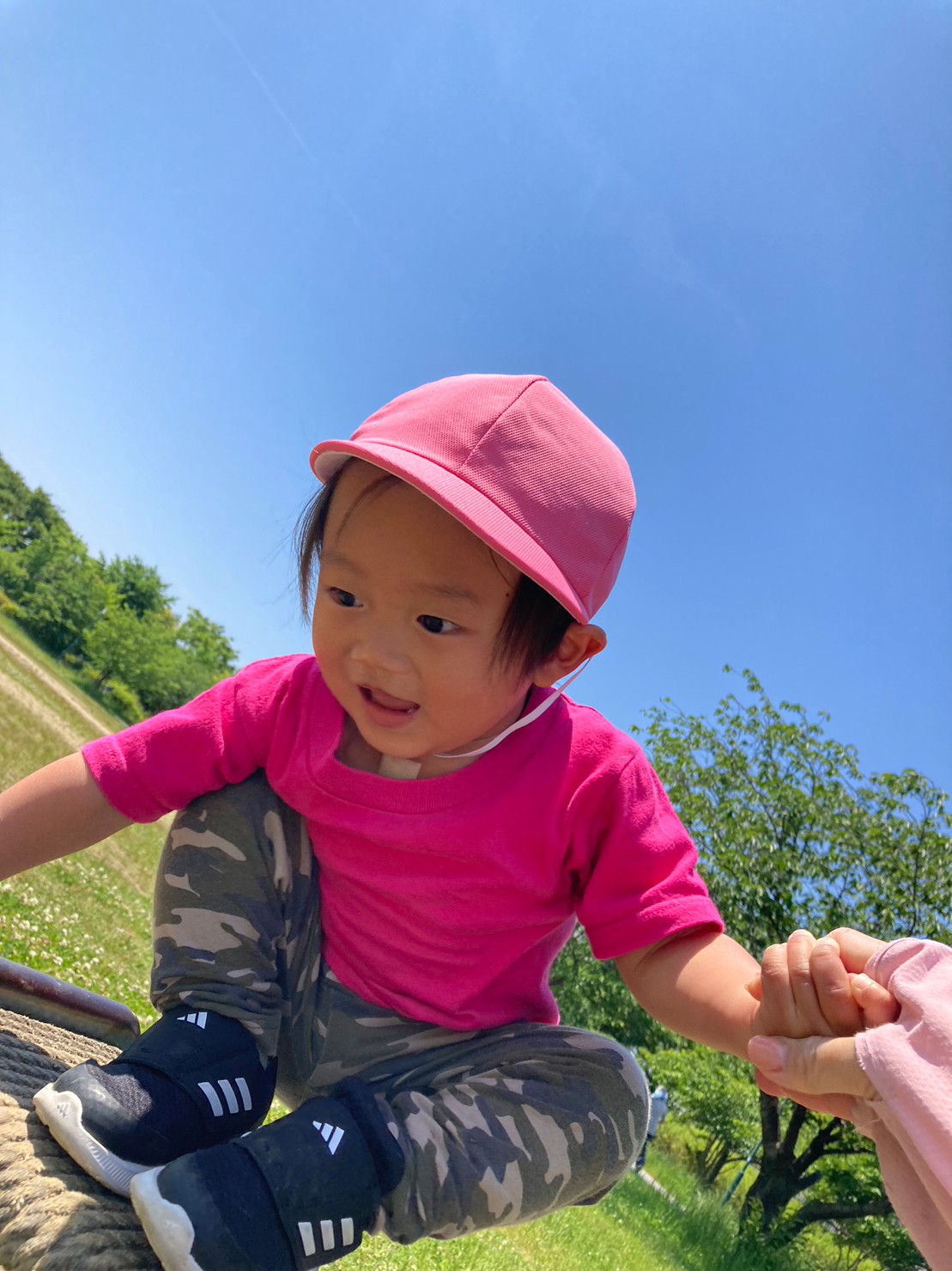 公園では、原っぱを全速力で走り「まてまて〜」「こっちだよ〜」とかけっこを楽しんだり、太鼓橋にも挑戦しています。