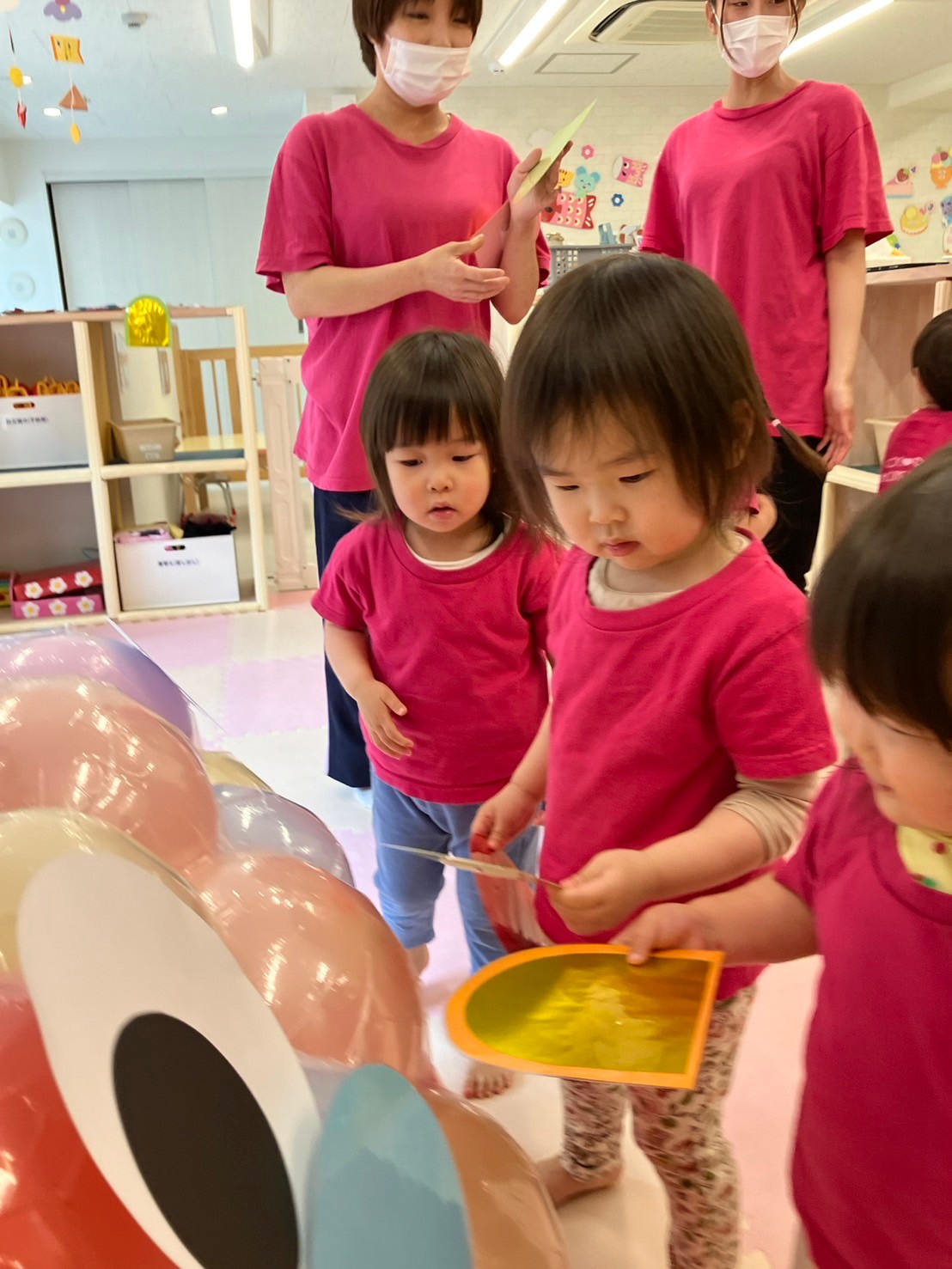 最後は部屋に落ちている鱗を集めてみんなでバルーンマットに巨大こいのぼりを作りました。