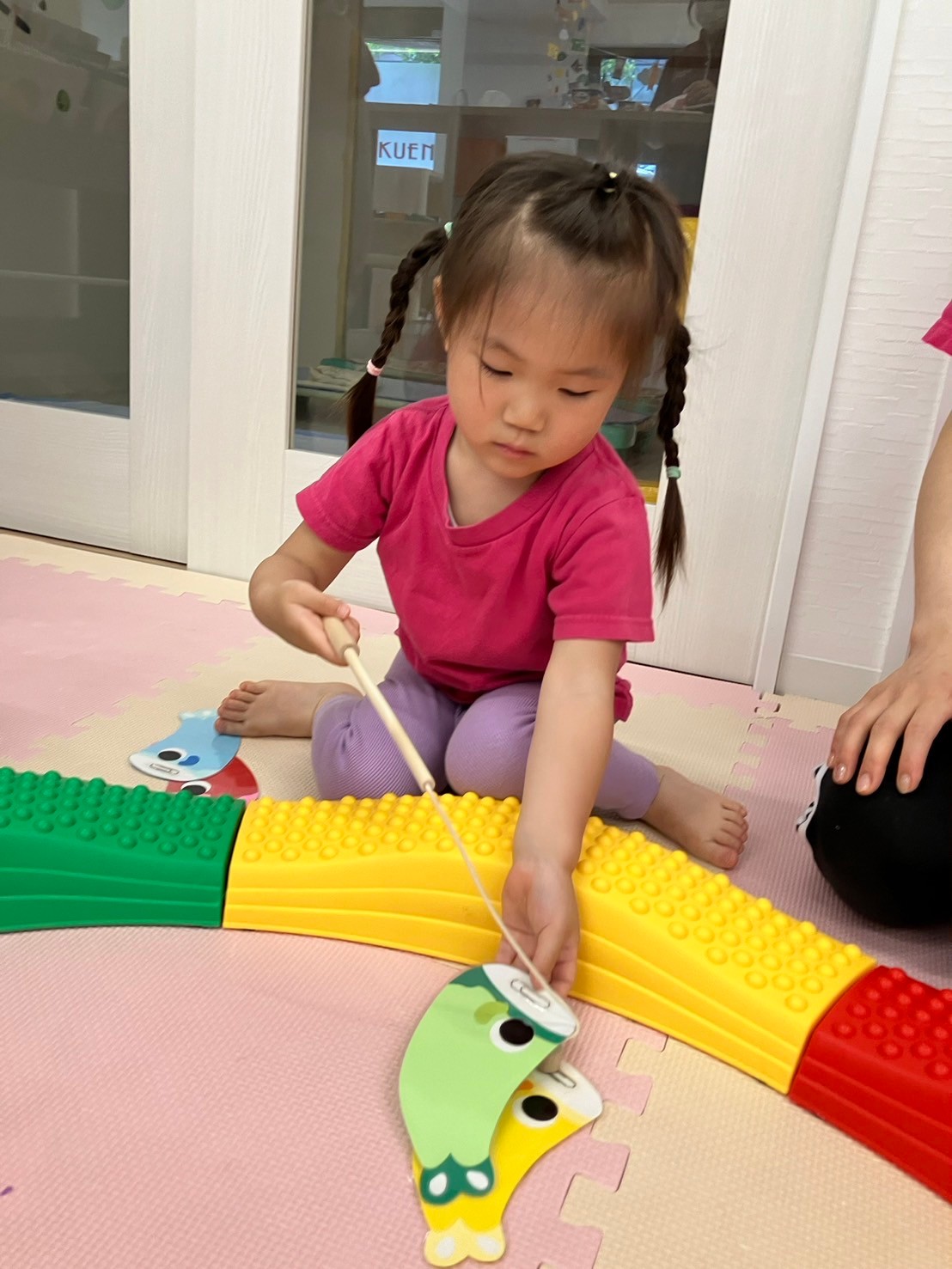 お家で使ったことあるよ!という子もいれば、初めてでちょっぴりドキドキしている子もいましたが、まずは先生の話を聞いたり、手本を見てからスタート!