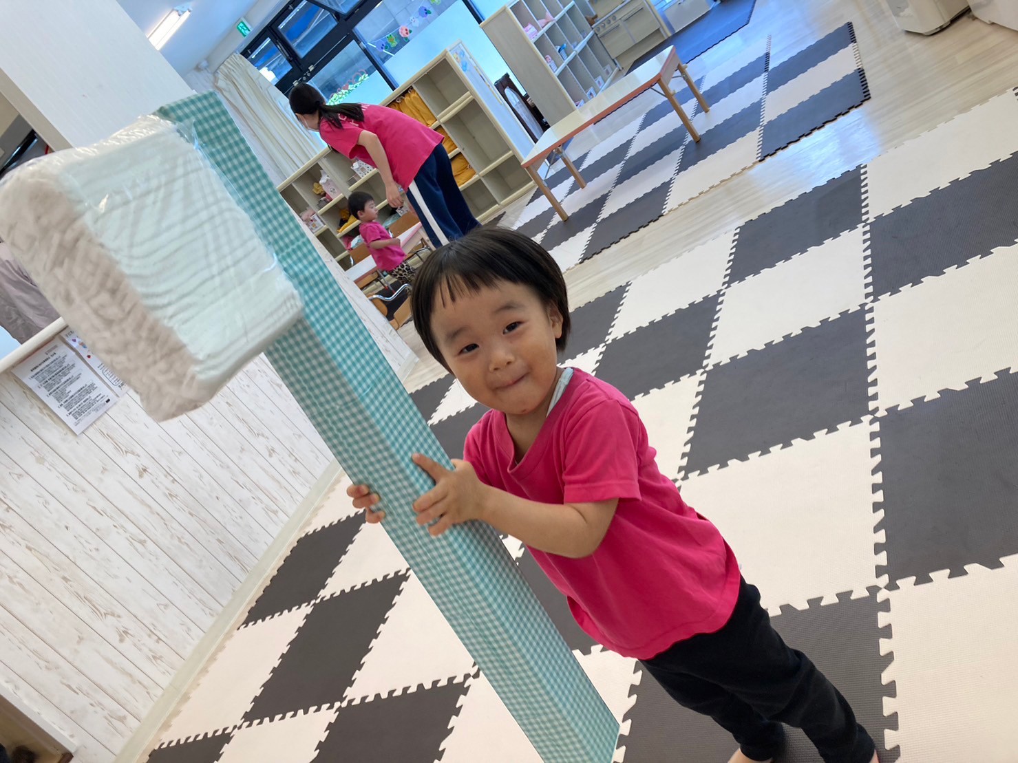 2歳児クラスのお友だちが年下のお友だちに教えている姿もあり、かっこいいお兄さんとお姉さんに成長した姿が見えて嬉しかったです。