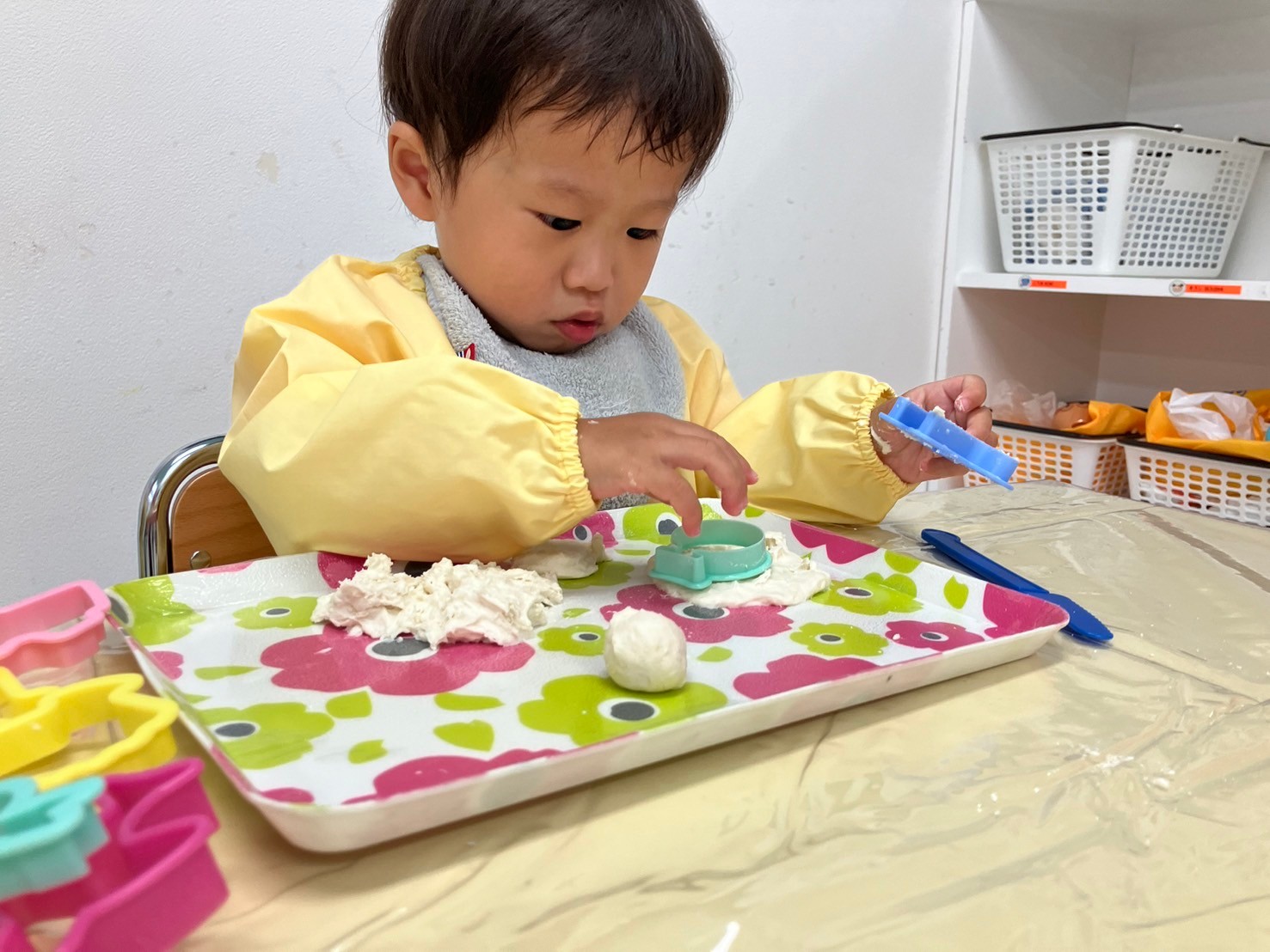 型抜きをしたりスプーンですくってみたり、、、時には真剣な表情で最後まで上手に遊んでいましたよ⭐︎