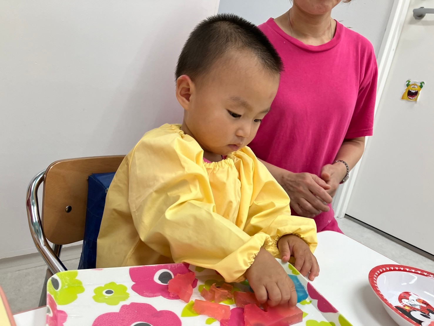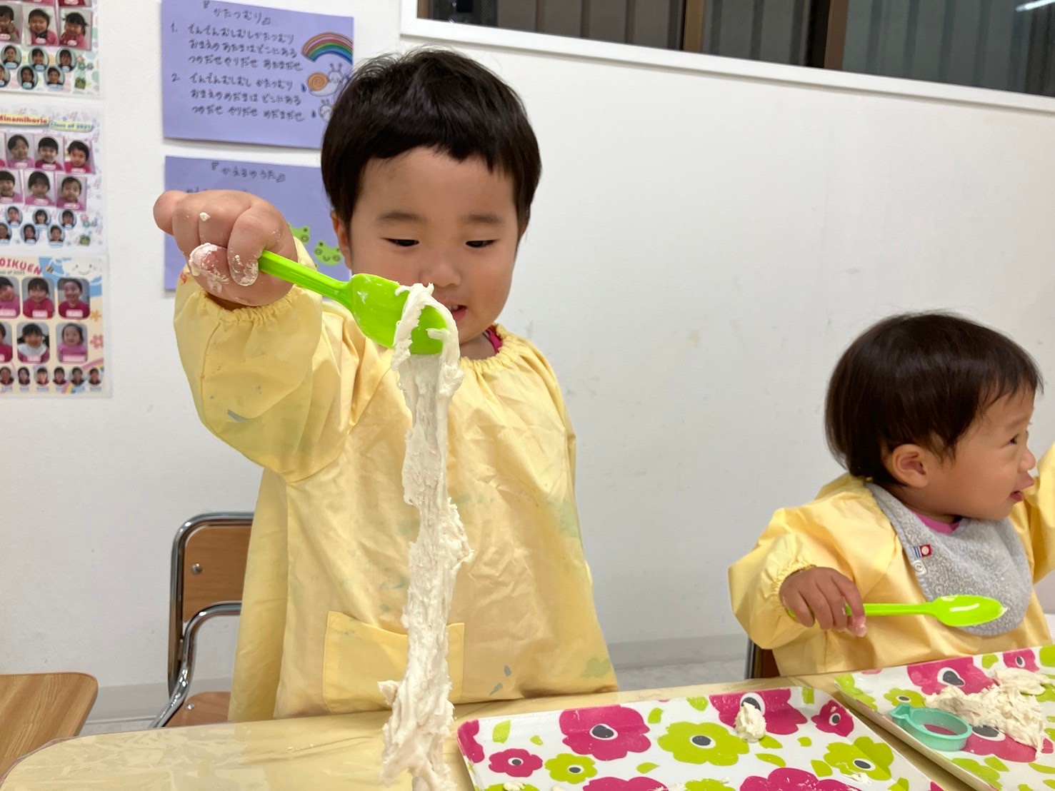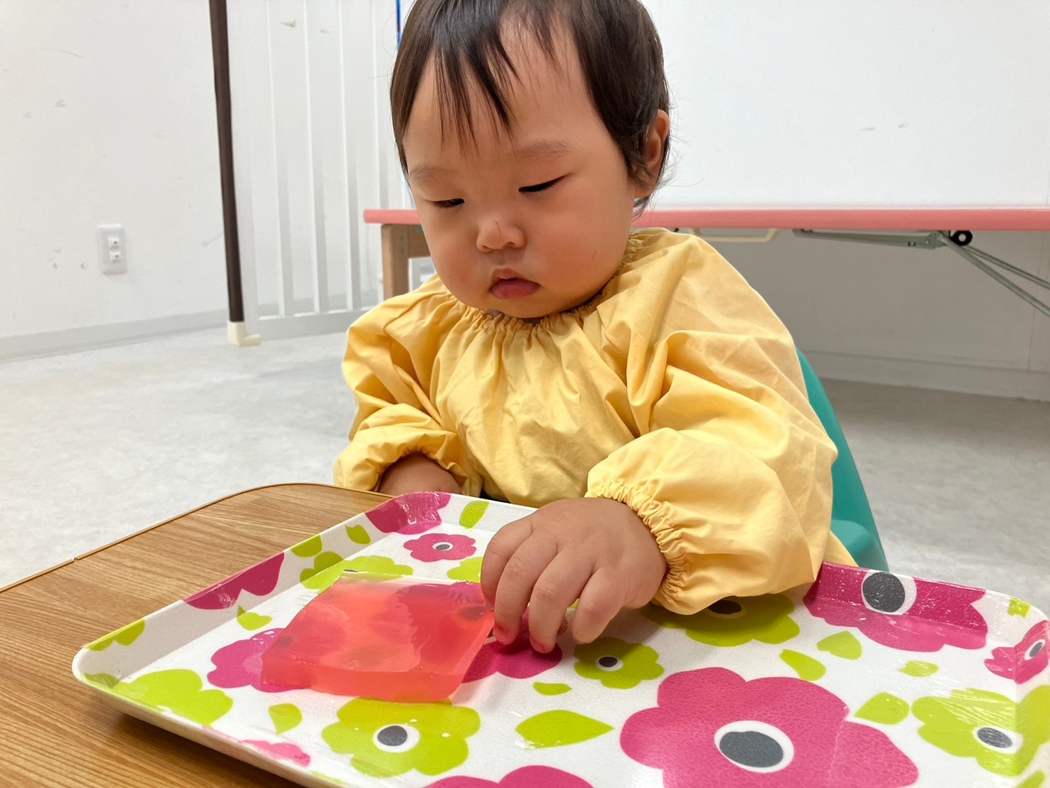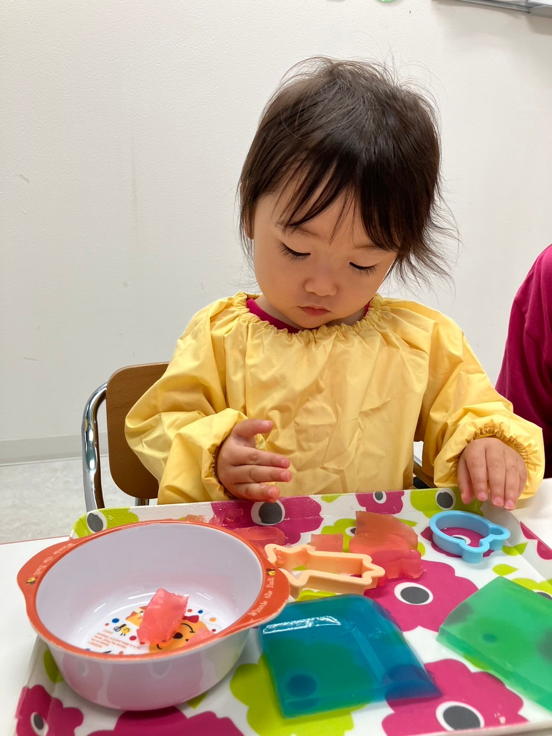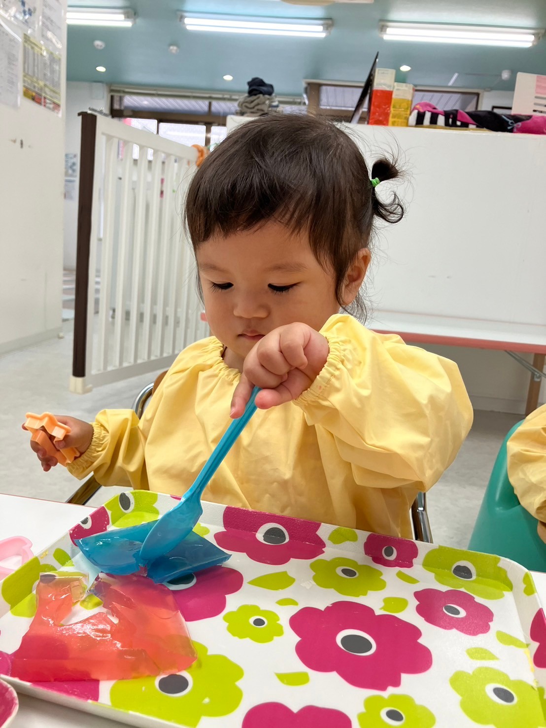 不思議な感触に驚いたり、カラフルな寒天に興味津々な子どもたちでした!