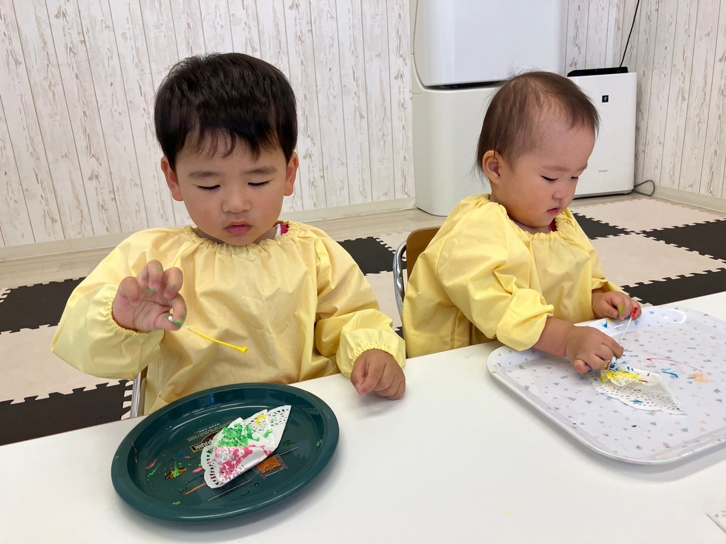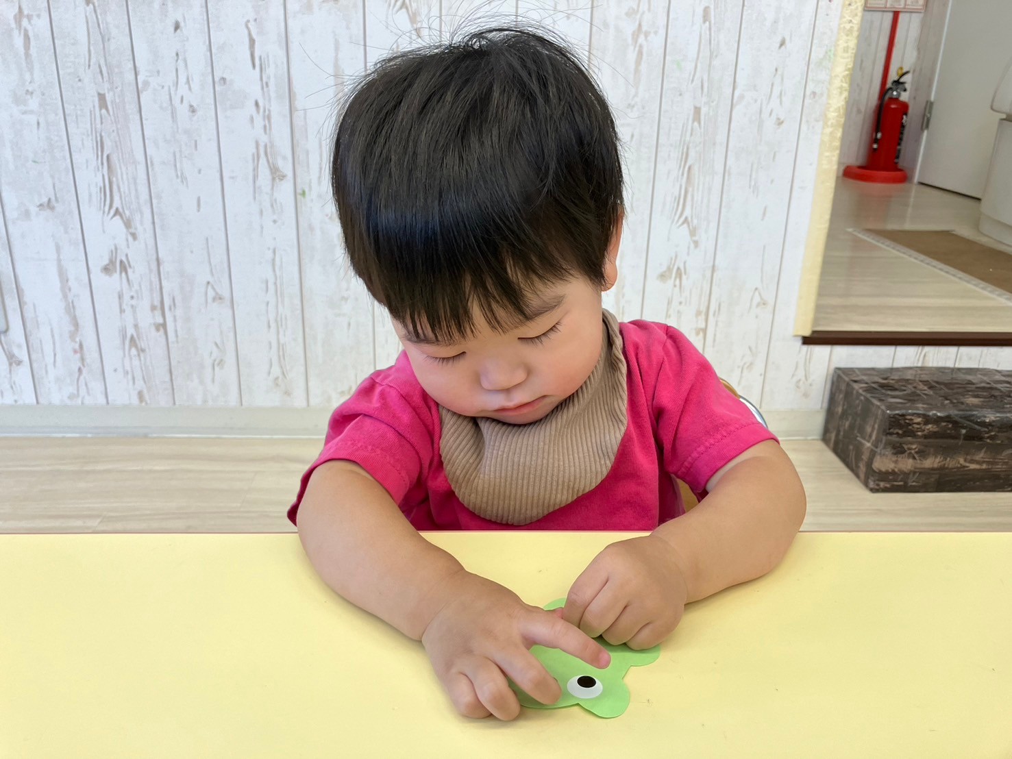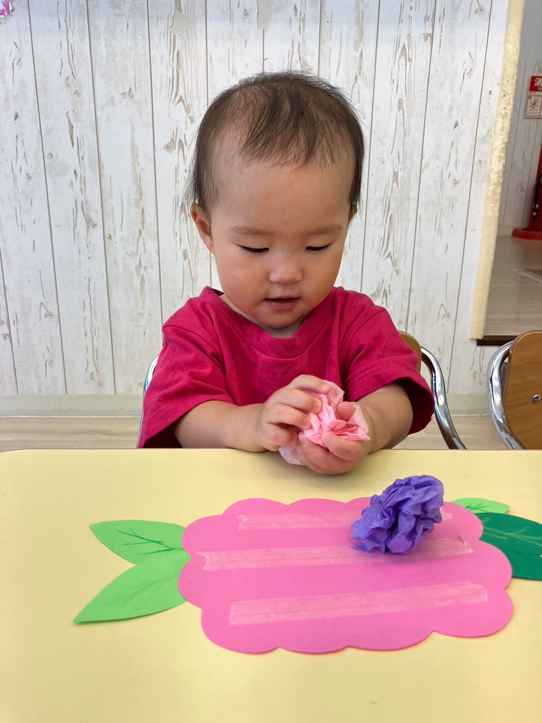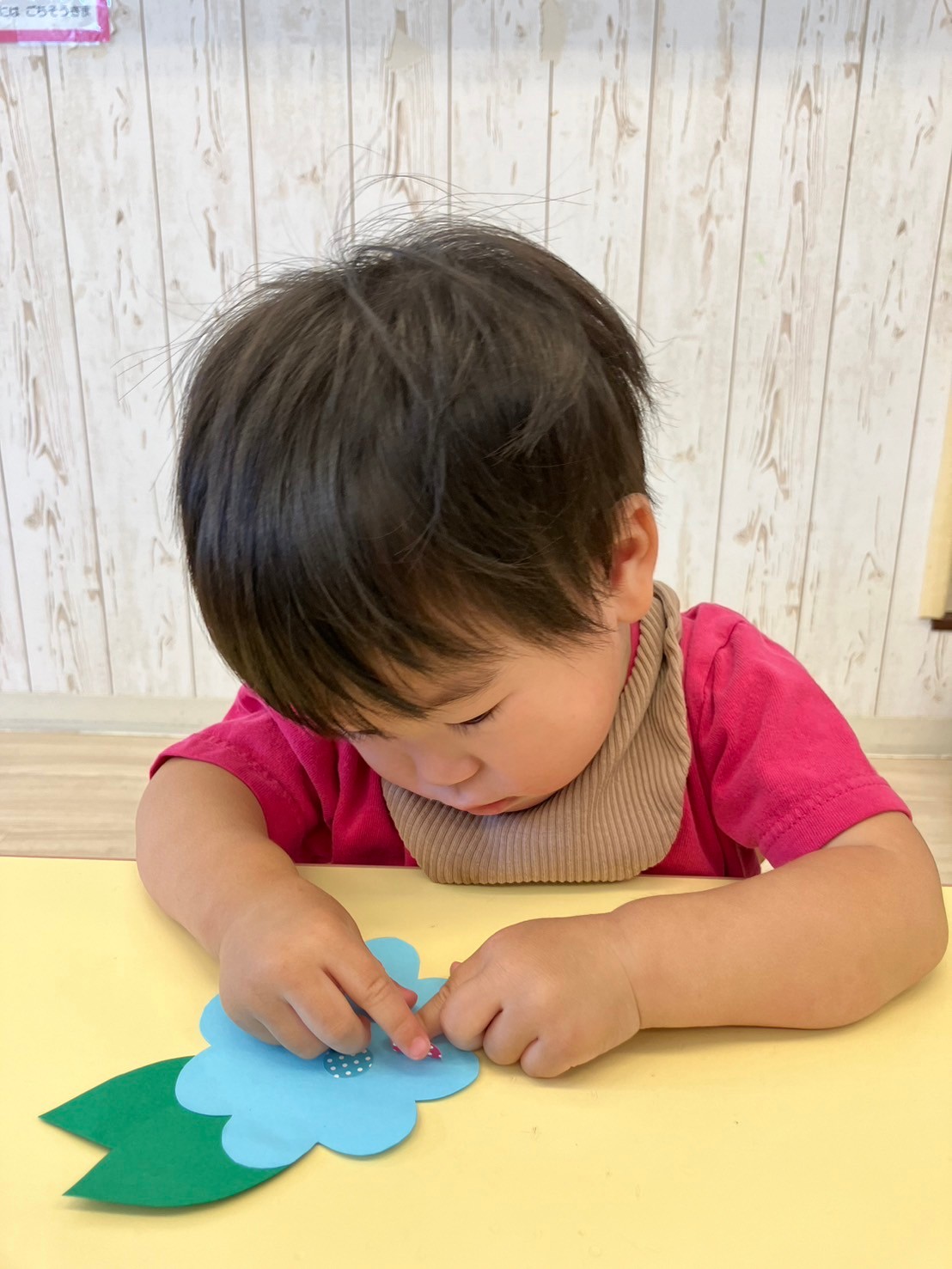 また、紫陽花作りでは、花紙を上手に丸めたり、カタツムリを作る時には「どこにはろうかな〜?」と悩んで貼っている姿もあったり‥