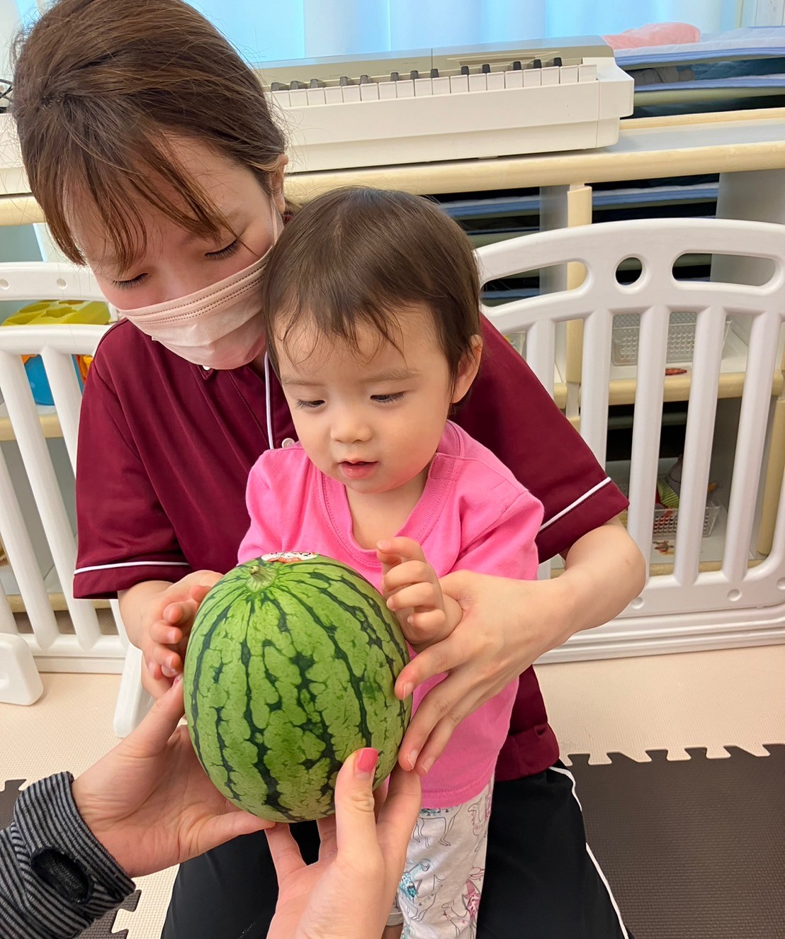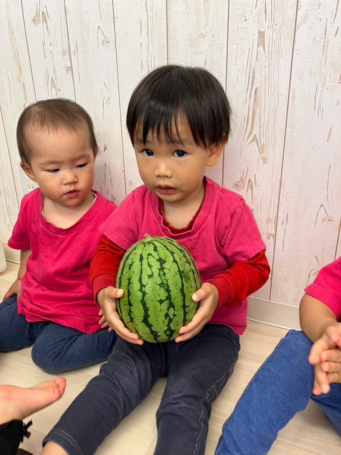 ツルツルとすいかの表面を撫でて喜んでいましたよ。