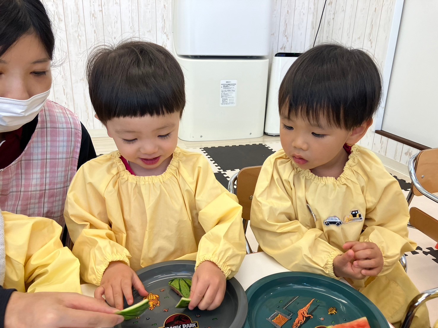 すいかをパッカーン!と割ると甘い香りがし嬉しい気持ちになりました。