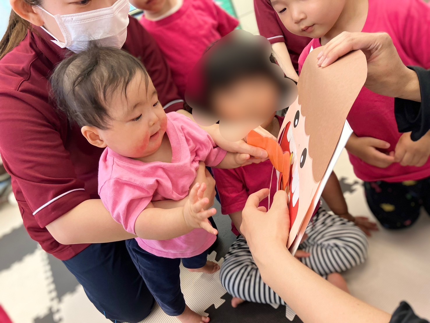「せんせ〜、カエルわらっているよ!」と保育者に教えてくれている姿があったり「○○のは、おこっているの〜!」とお友だちと仲睦まじく話している姿がありました。