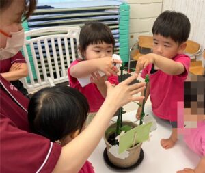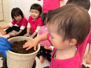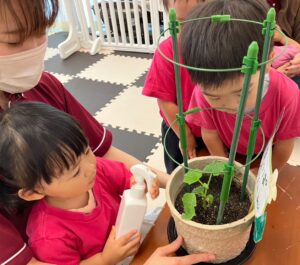 「はっぱぐりーん!」と優しく声を掛け、日々の小さな変化にも成長を喜んでいる子ども達が本当に可愛いです。