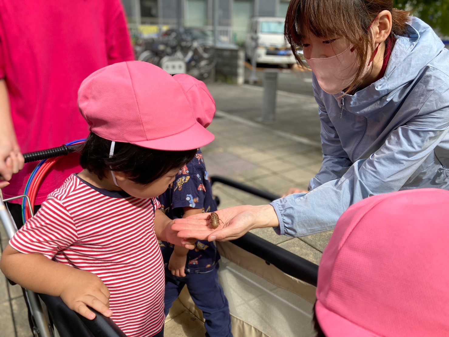 「せみだ!」「ここはあしかな?」と目をキラキラさせて迷いもなく触り、観察している子もいれば、「こわい…」と遠くから見ている子と反応は様々でした。
