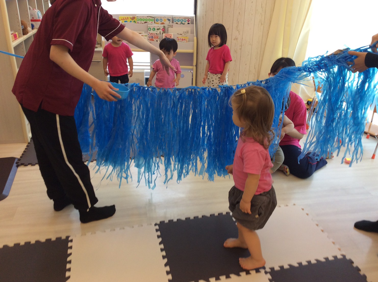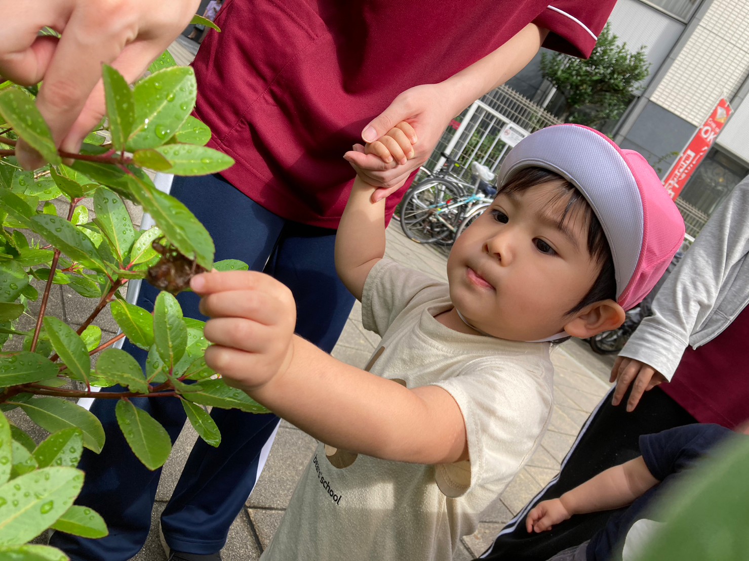 しかし、最初は怖がっていた子も、興味はあるようで保育者が近づけると、おそるおそるチョンチョンと触っていました。